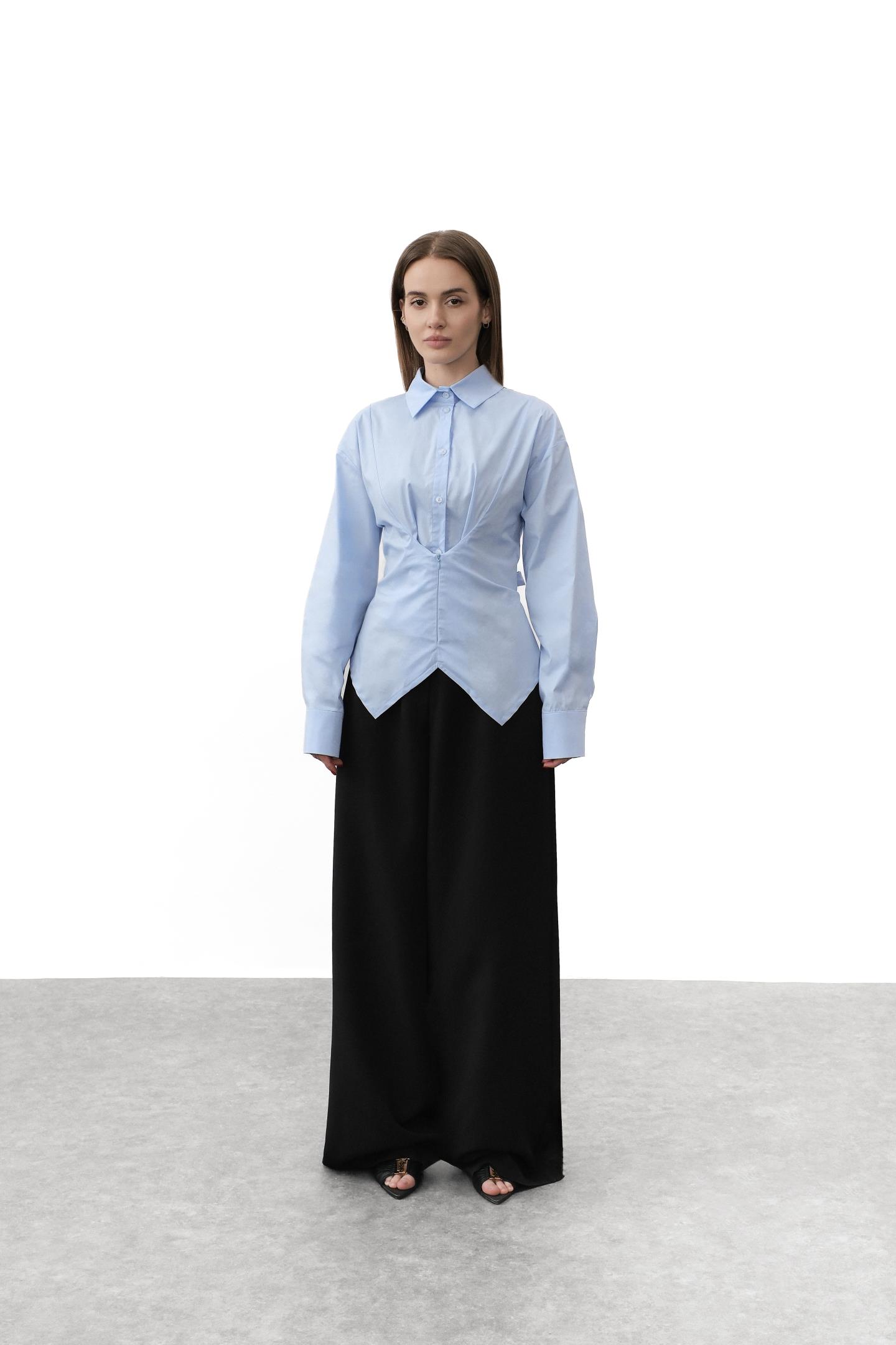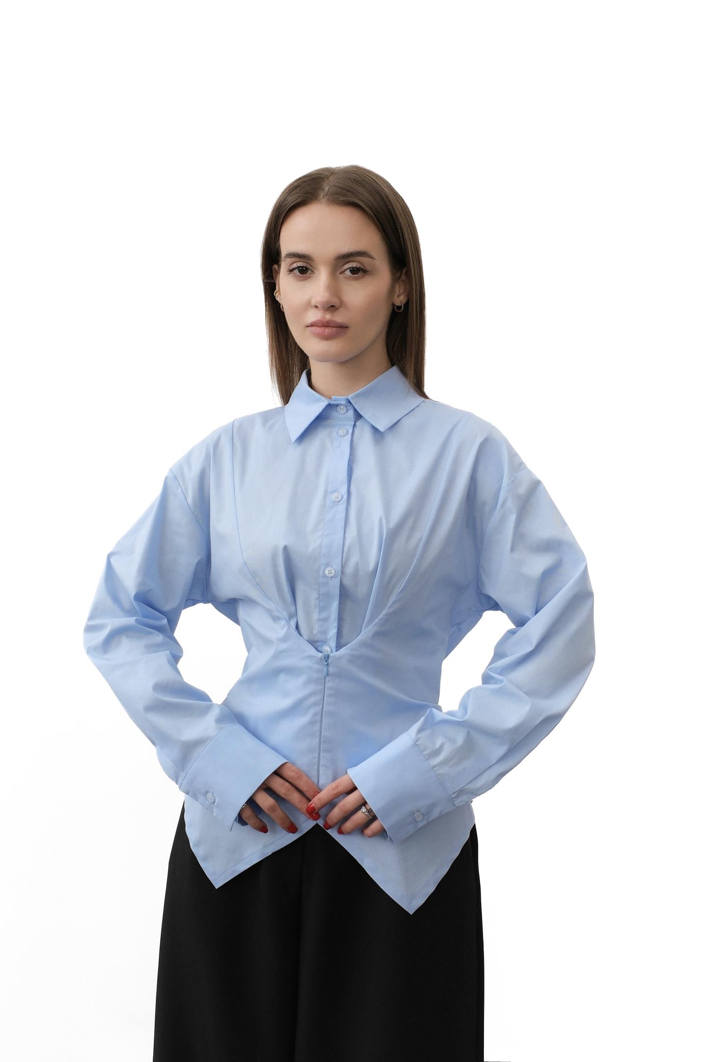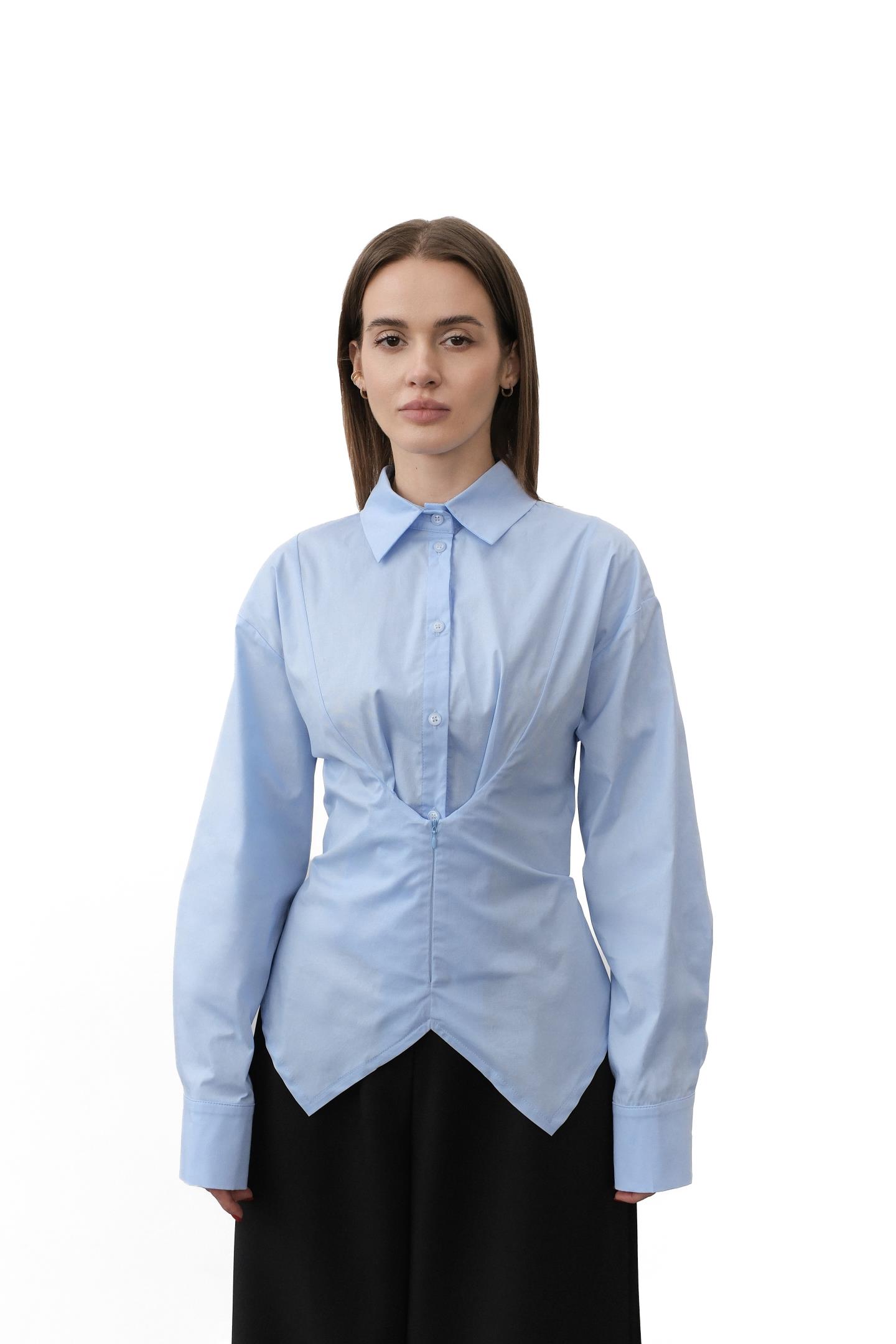 Сорочка в смужку з особливим кроєм Блакитний