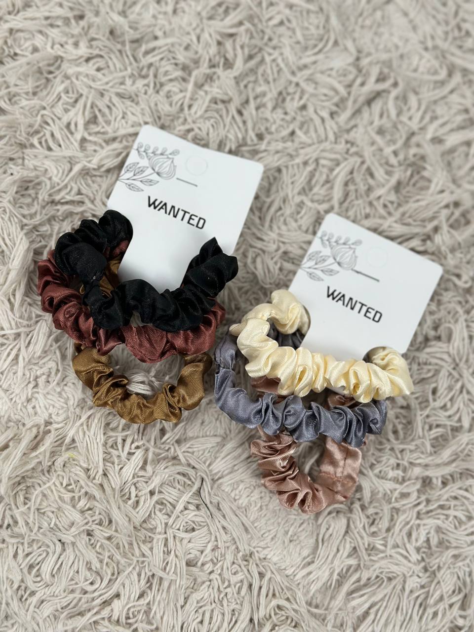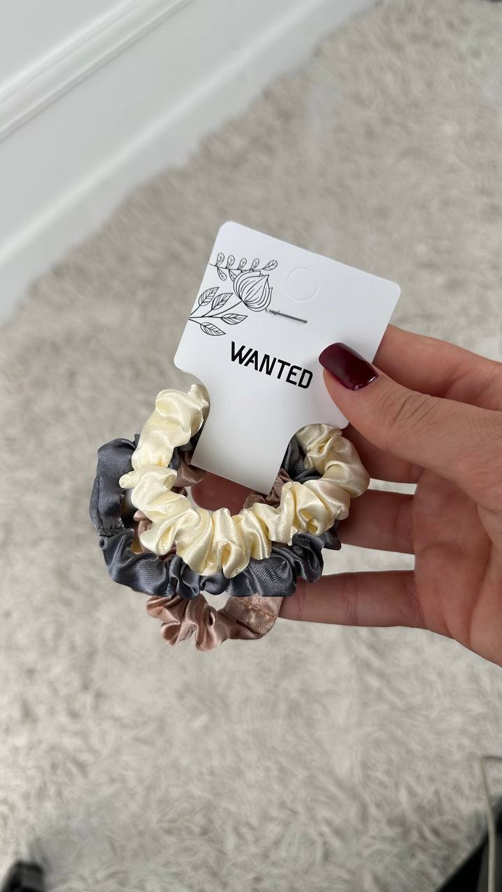 Набір атласних резинок-скранчів — ніжність, що працює на стиль. М’який, гладкий атлас дбайливо ставиться до волосся, зменшуючи ламкість і заломи. Резинки надійно тримають зачіску без зайвого тиску та дискомфорту. Ідеальні для щоденних образів і особливих моментів, коли важливі деталі