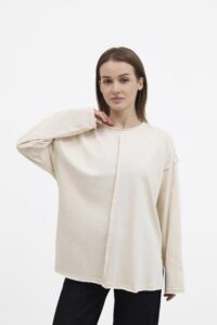 Стильний об’ємний бавовняний лонгслів із контрастною смужкою по центру створює ефектний акцент і робить образ динамічним. Натуральна м’яка бавовна дарує комфорт, а вільний силует додає легкості та впевненості. Ідеально підходить для сучасних повсякденних луків.