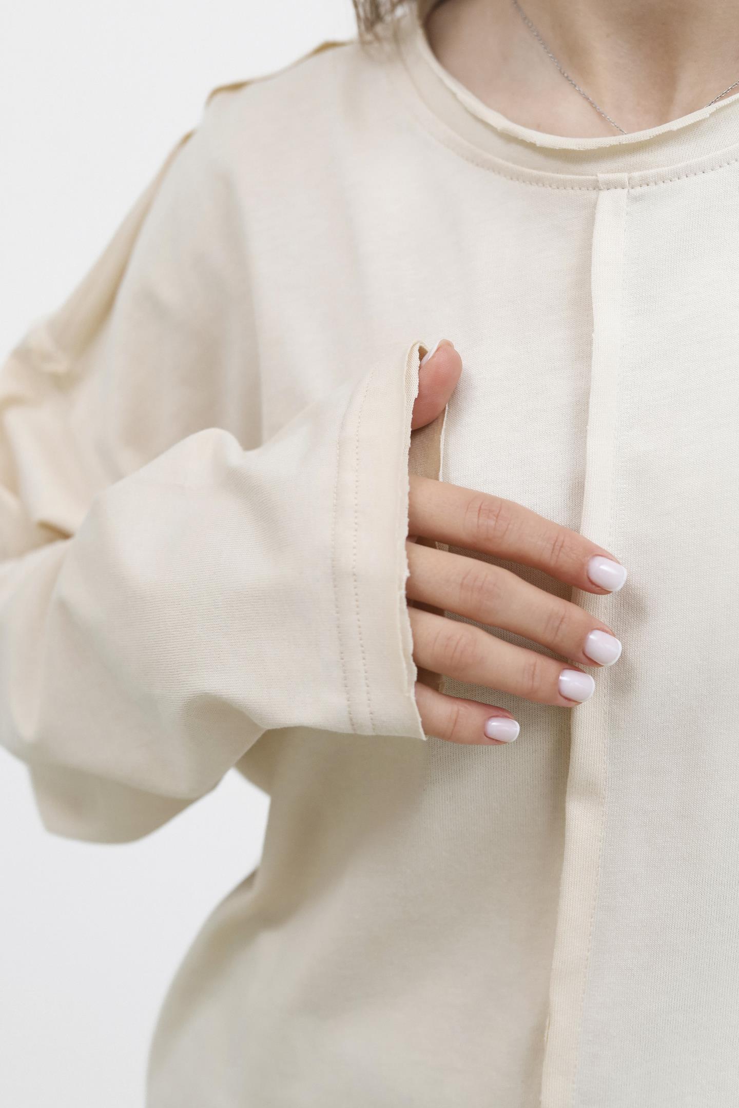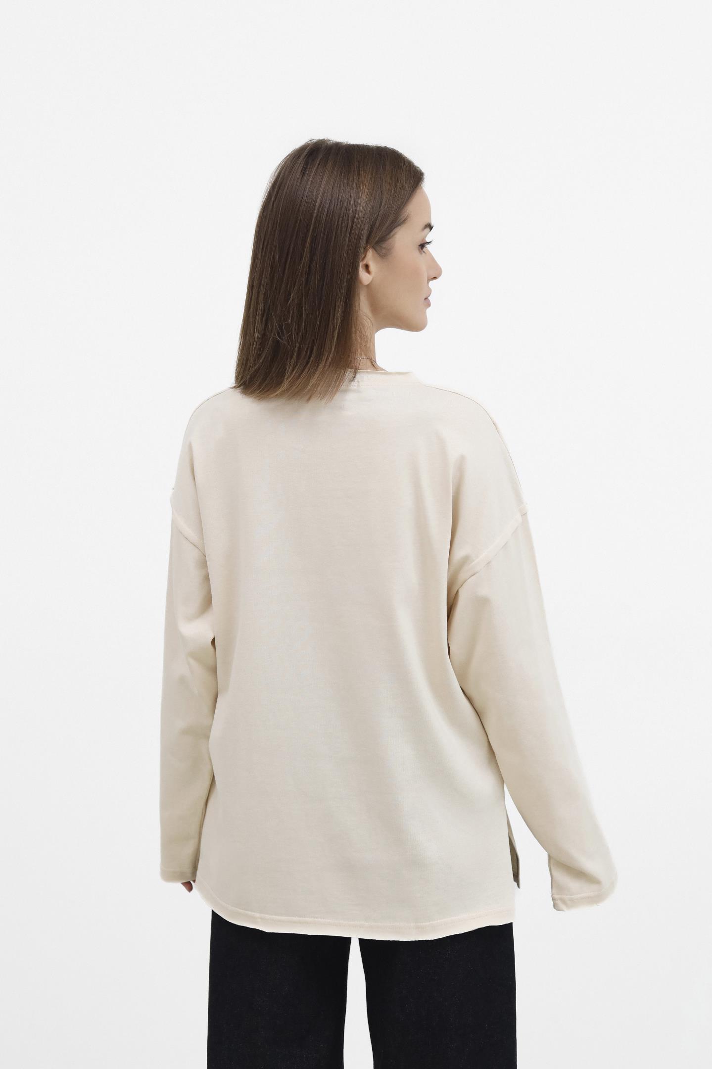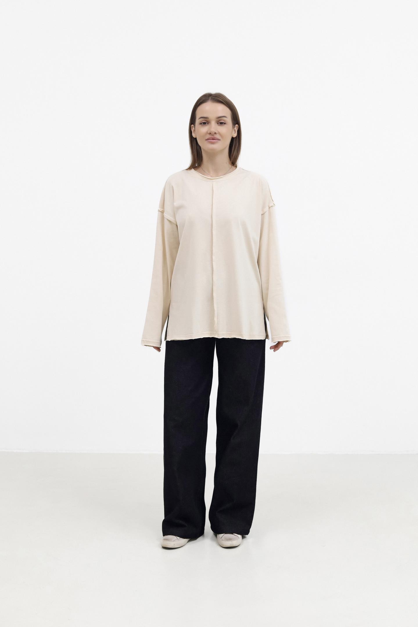Головна Жінкам Футболки, топи та лонгсліви Бавовняний лонг із акцентною лінією Кремовий