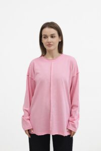Стильний об’ємний бавовняний лонгслів із контрастною смужкою по центру створює ефектний акцент і робить образ динамічним. Натуральна м’яка бавовна дарує комфорт, а вільний силует додає легкості та впевненості. Ідеально підходить для сучасних повсякденних луків.