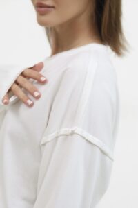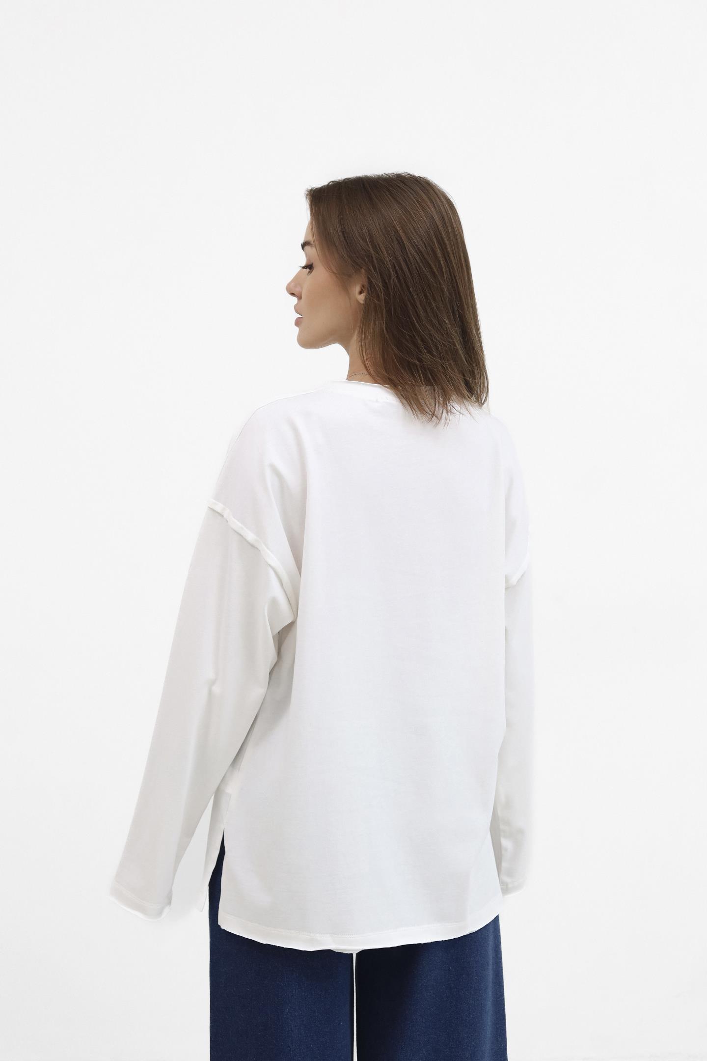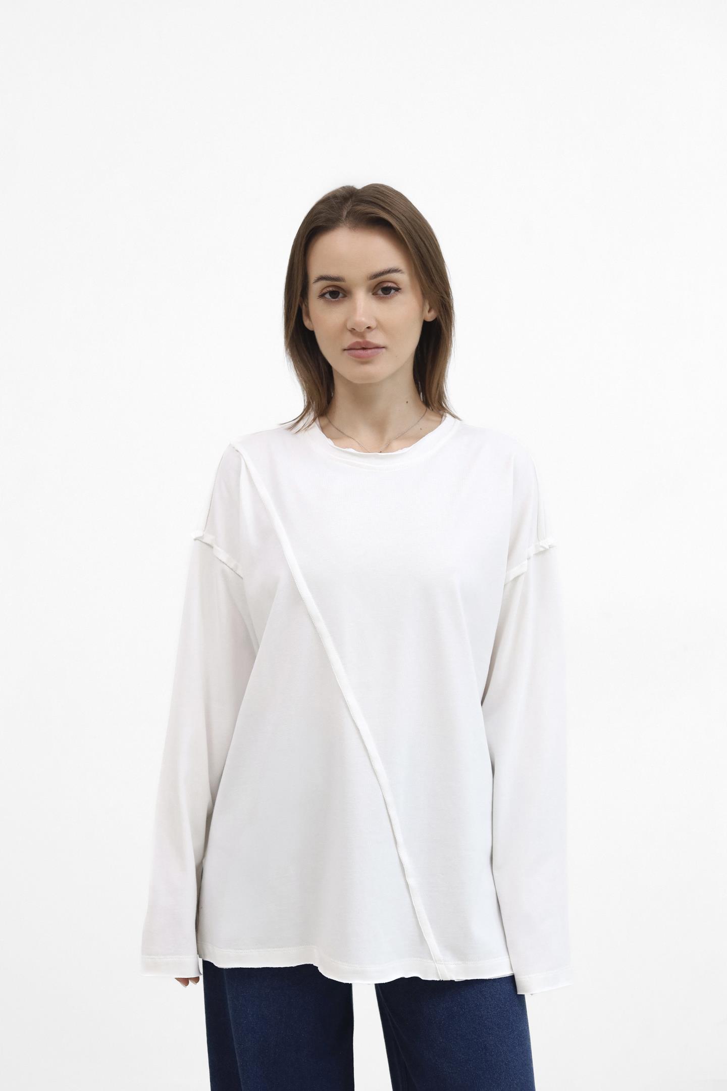 Головна Жінкам Футболки, топи та лонгсліви Бавовняний лонг із діагональною смужкою Молоко
