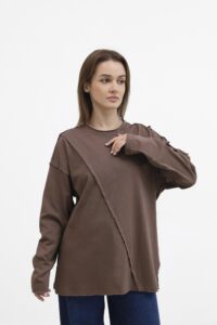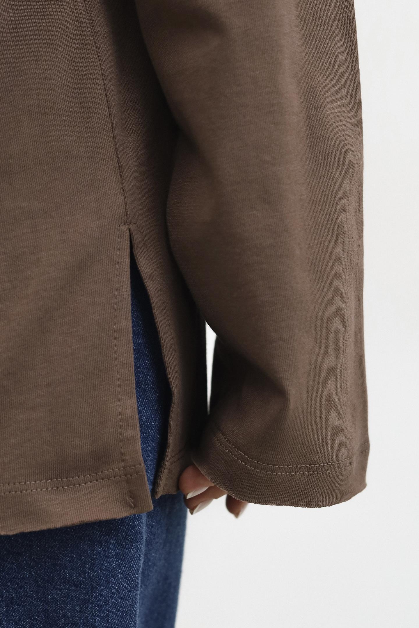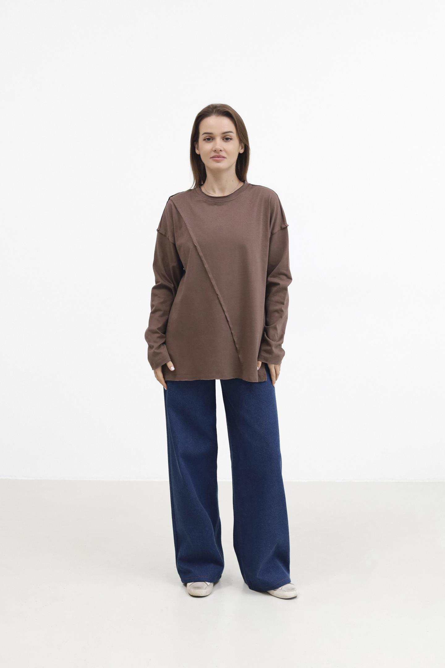 Головна Жінкам Футболки, топи та лонгсліви Бавовняний лонг із діагональною смужкою Шоколад