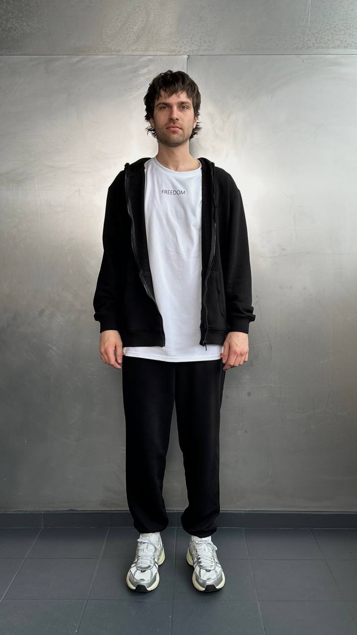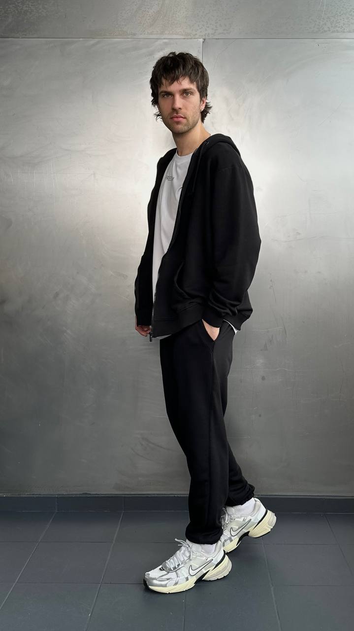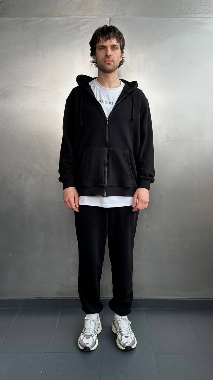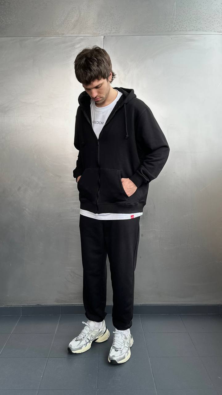 Чоловічий костюм з зіп-худі та джогерами Чорний