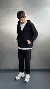 Чоловічий спортивний костюм у легкому стилі поєднує зручність і сучасний дизайн. Легка кофта на блискавці з кишенями забезпечує комфорт у повсякденному ритмі, а штани на еластичному поясі з манжетами знизу гарантують зручну посадку та свободу рухів.