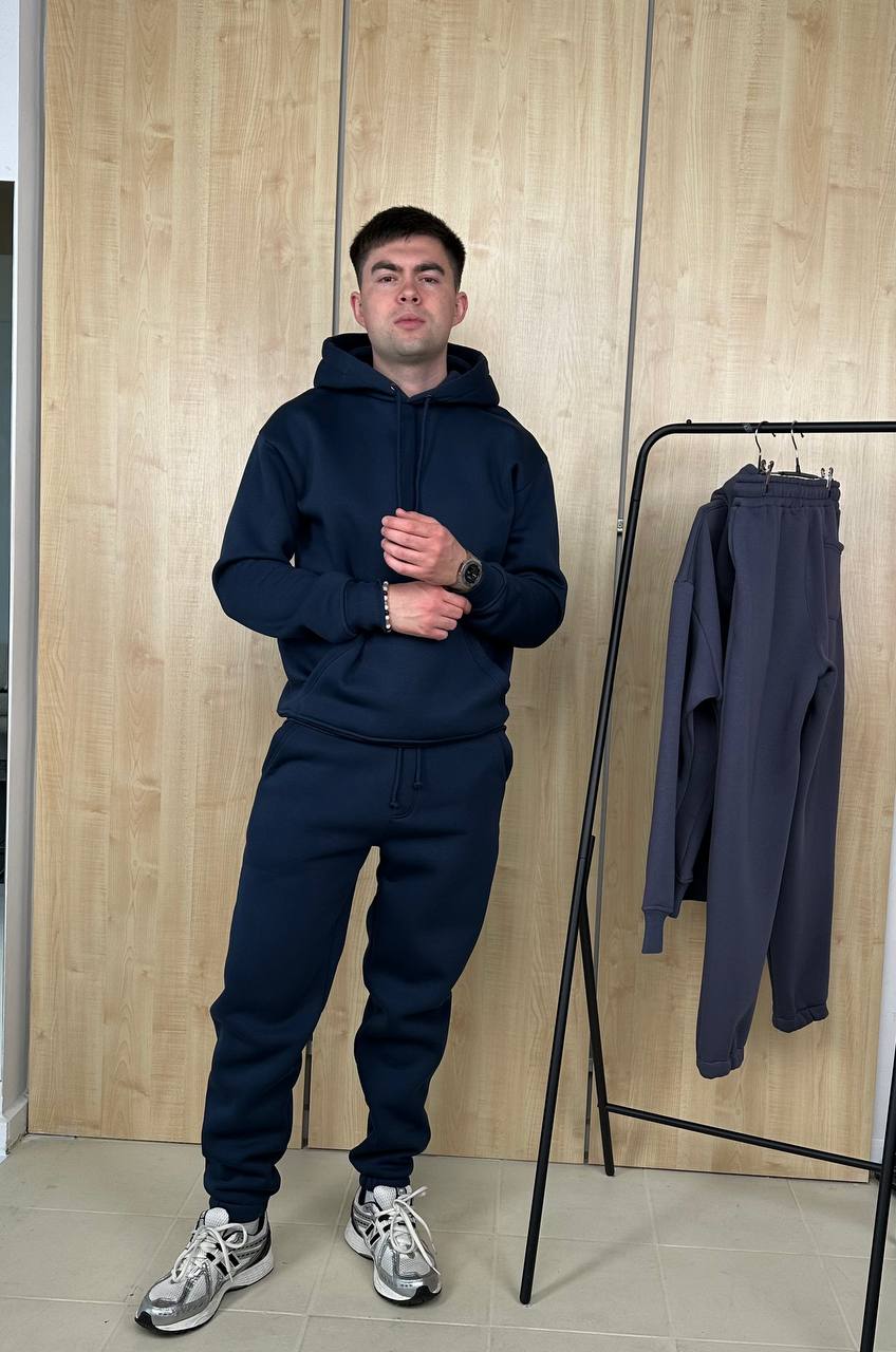 Головна Чоловікам Спортивні костюми Чоловічий утеплений костюм з худі Темно синій