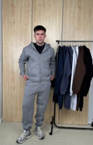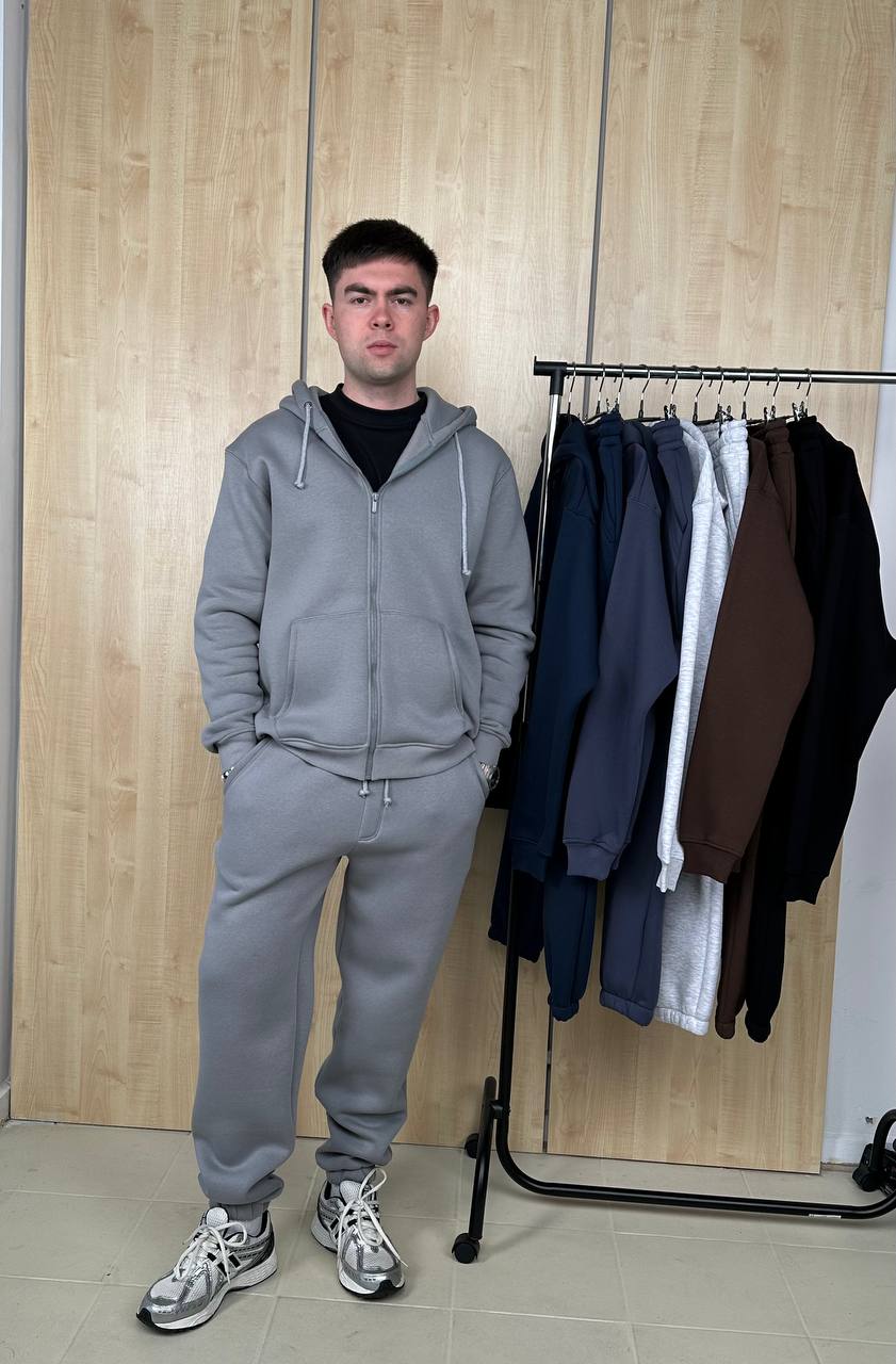 Теплий та комфортний костюм із високоякісної бавовни та з м’яким утеплювачем. Кофта вільного крою на блискавці з капюшоном, штани оснащені кишенями на еластичному поясі і резинкою знизу для зручної посадки. Ідеальний для повсякденного носіння та активного відпочинку.