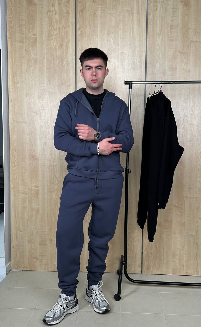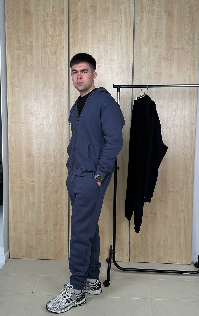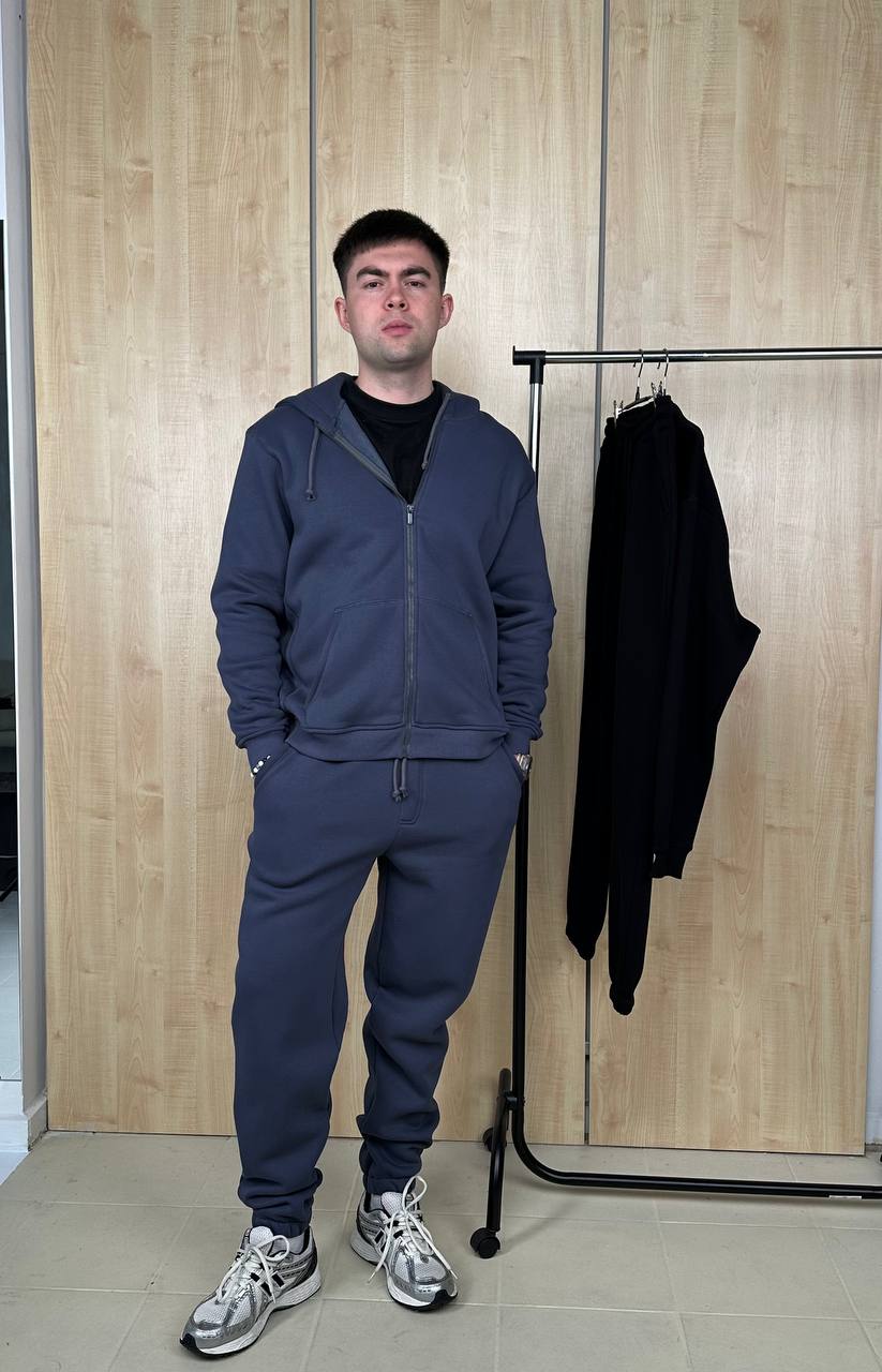 Теплий та комфортний костюм із високоякісної бавовни та з м’яким утеплювачем. Кофта вільного крою на блискавці з капюшоном, штани оснащені кишенями на еластичному поясі і резинкою знизу для зручної посадки. Ідеальний для повсякденного носіння та активного відпочинку.
