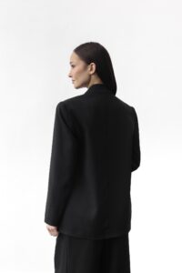 Базовий однотонний жакет прямого крою з сучасним силуетом. Виразна лінія коміра вздовж декольте додає образу елегантності. Модель із довгими рукавами, двома боковими кишенями. Жакет застібається на ґудзик спереду та легко стилізується — можна носити вільно або доповнювати поясом чи аксесуарами.