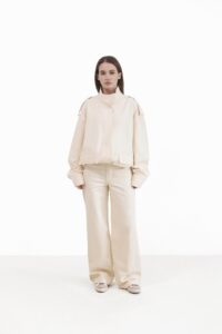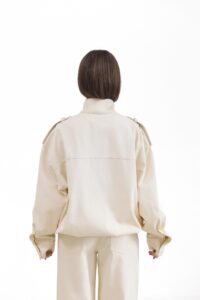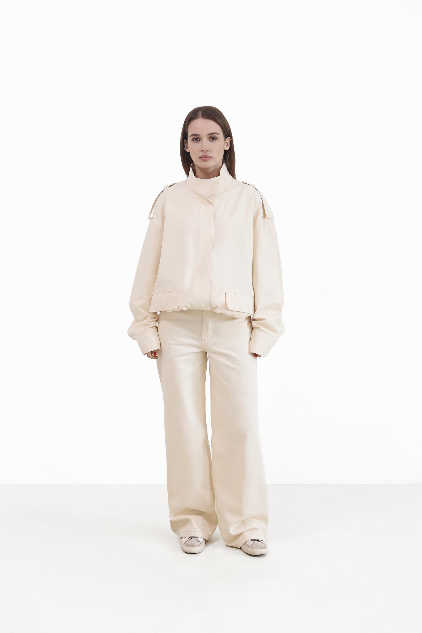 Куртка з вільним фасоном — ідеальна база для стильних щоденних образів. Високий комір додає сучасного характеру, місткі накладні кишені забезпечують зручність, а регульований низ допомагає створити бажаний силует. Лаконічна модель, яка легко комбінується з різними стилями одягу