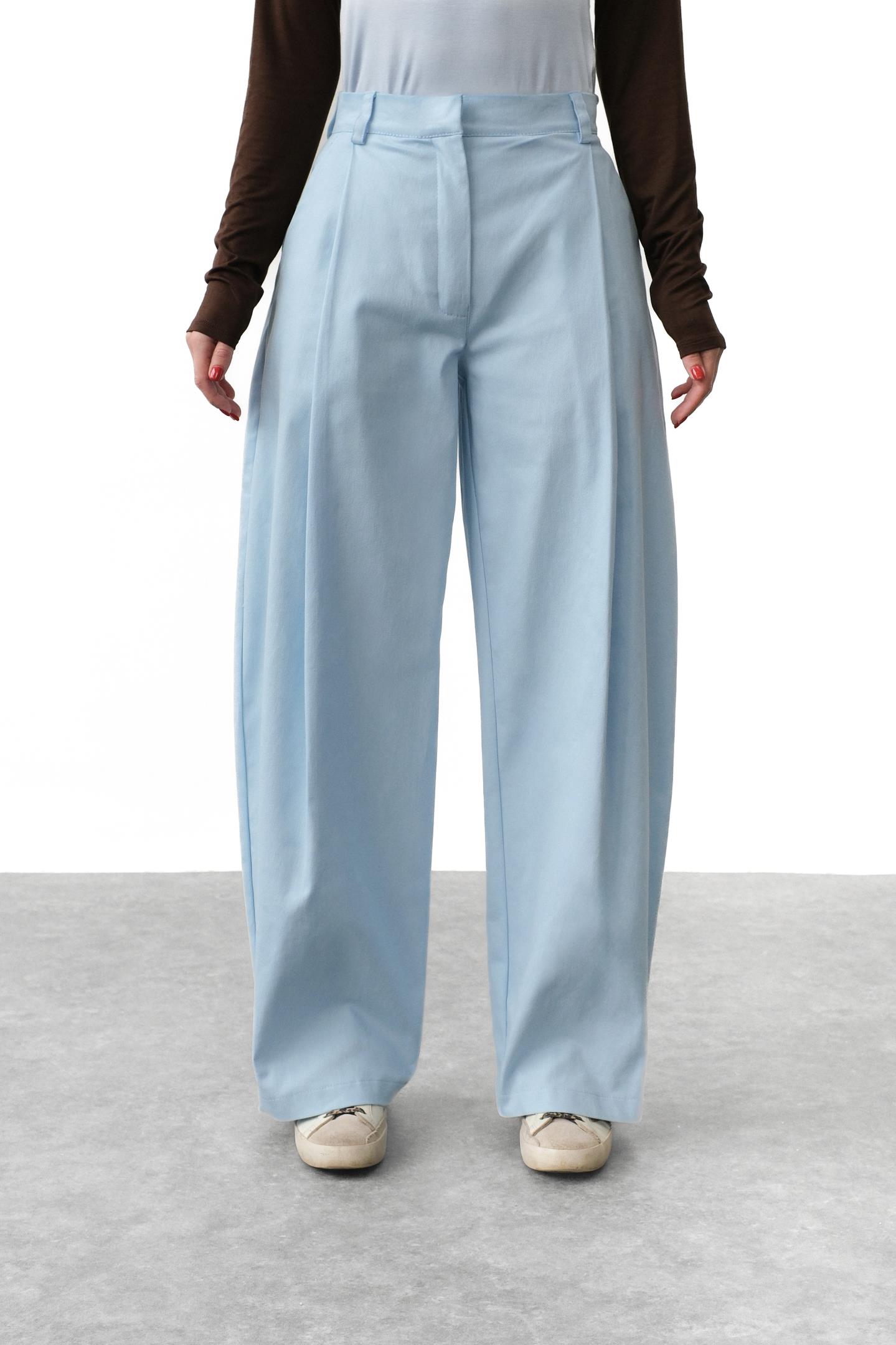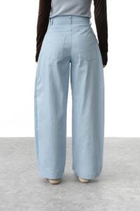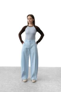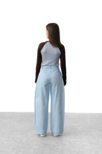 Джинси палаццо — сучасна база, яка підкреслює талію та візуально витягує силует. Особливим акцентом виступають защипи, які формують трендовий силует і роблять посадку ще більш виразною. Вільний крій із широкими штанинами додає образу легкості та відкриває безліч варіантів стилізації