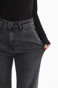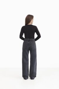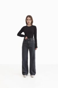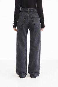 Стильні джинси з високою посадкою та вільним кроєм по стегнах. Функціональні кишені, шльовки для ременя та класична застібка на блискавку й ґудзик роблять їх універсальними, а щільний пояс підкреслює талію й додає витонченості силуету. Ідеальний вибір для сучасного гардеробу