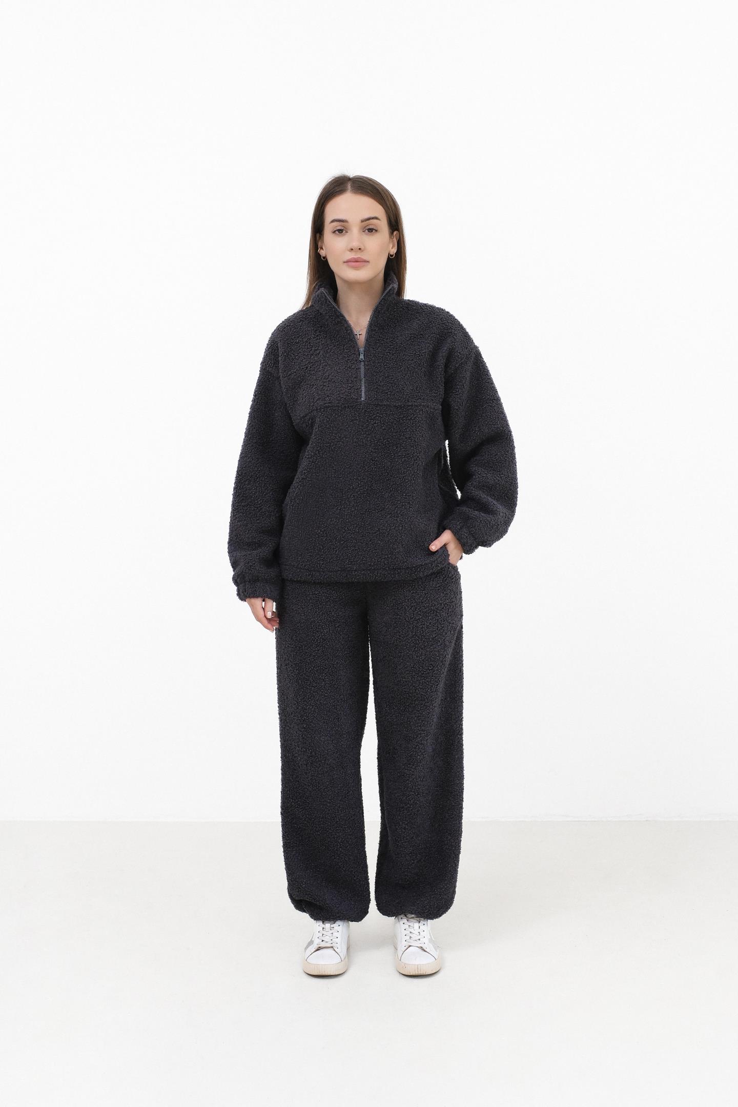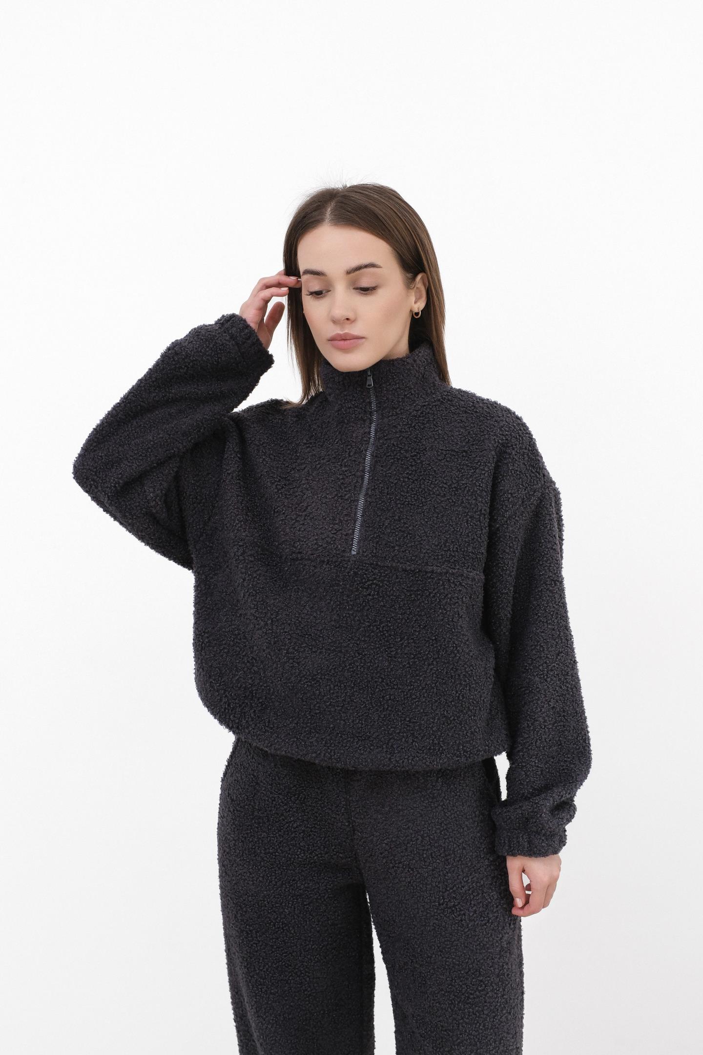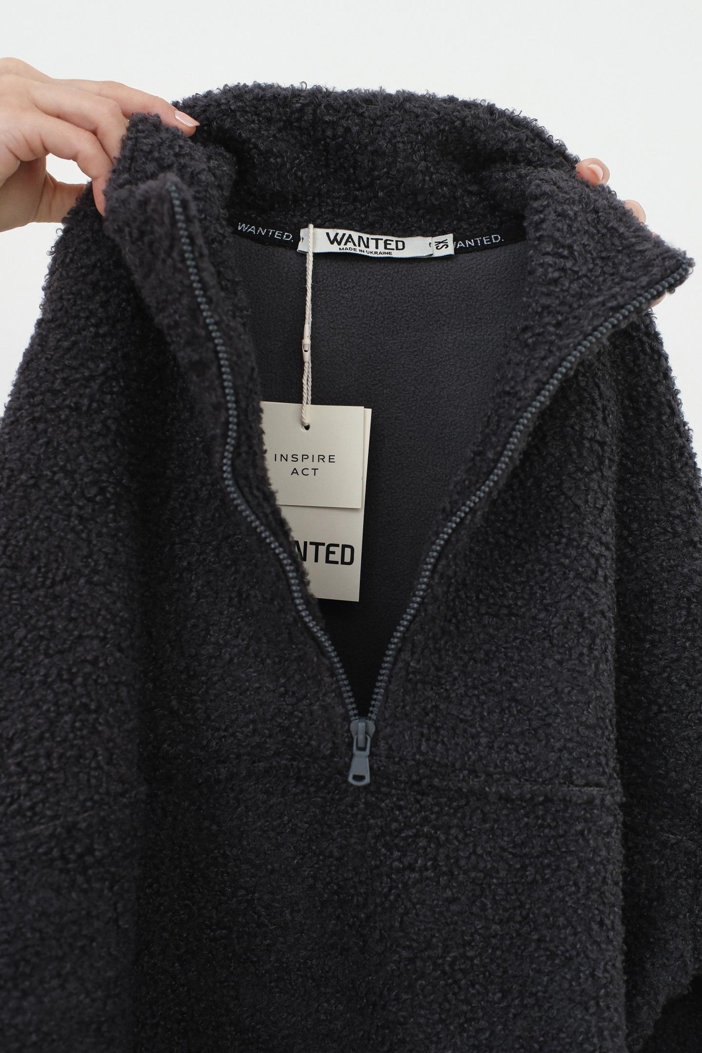 Флісове тедді-худі з коміром на блискавці Антрацит