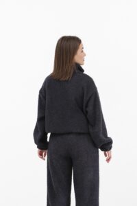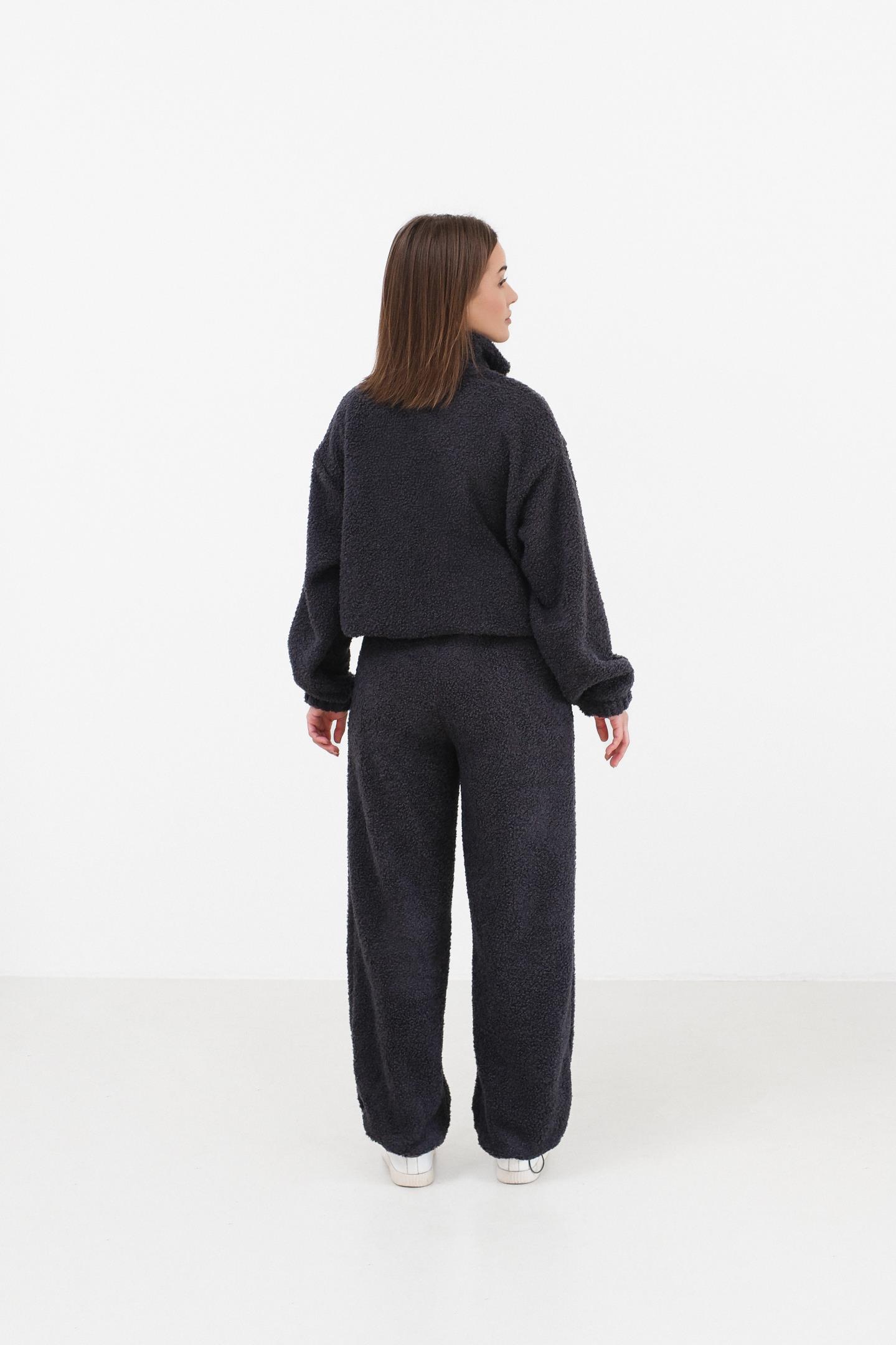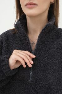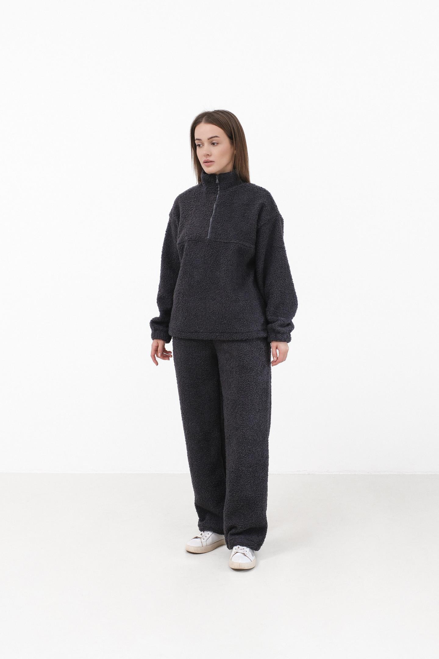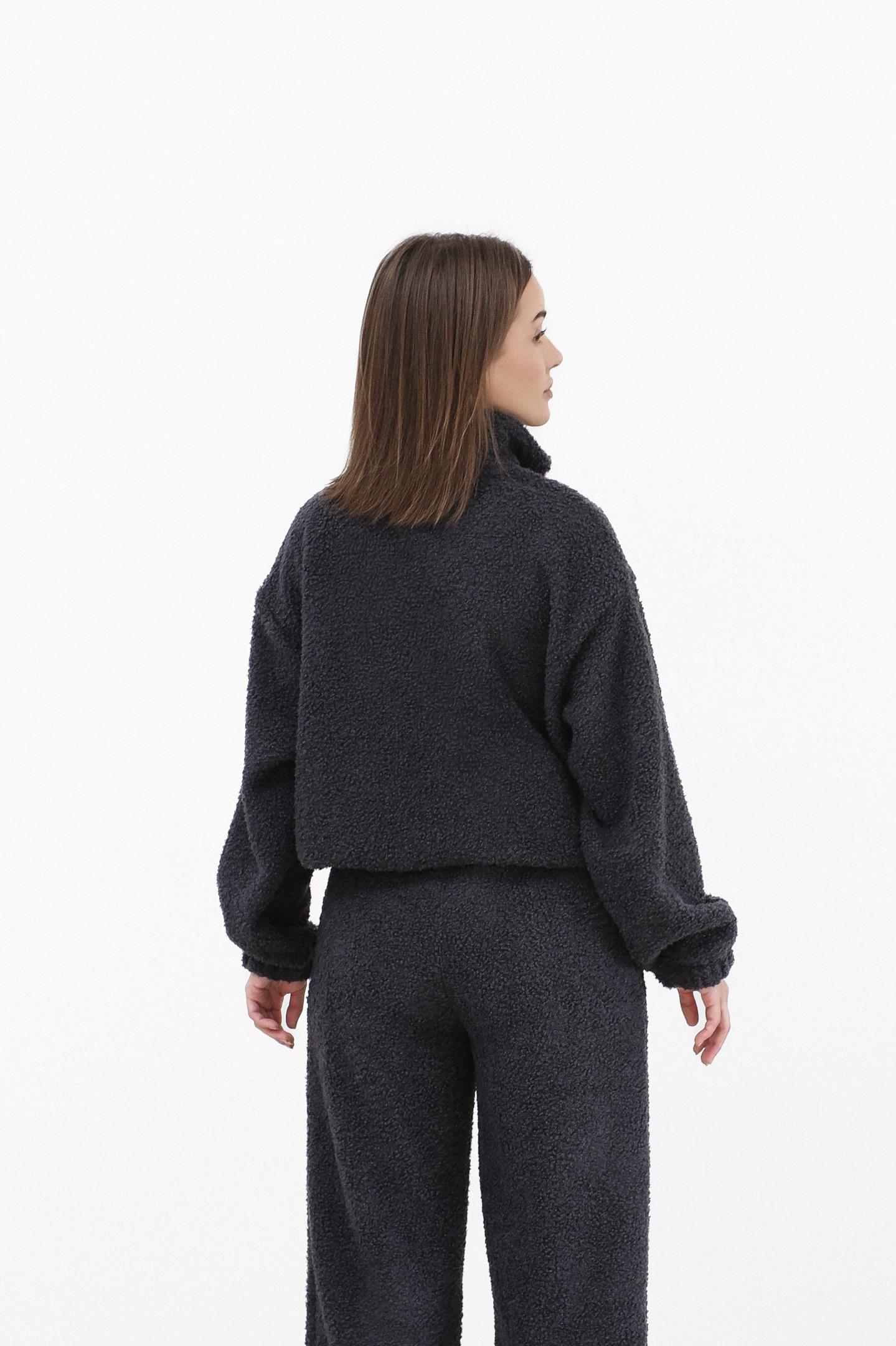 Флісове тедді-худі з коміром на блискавці Антрацит