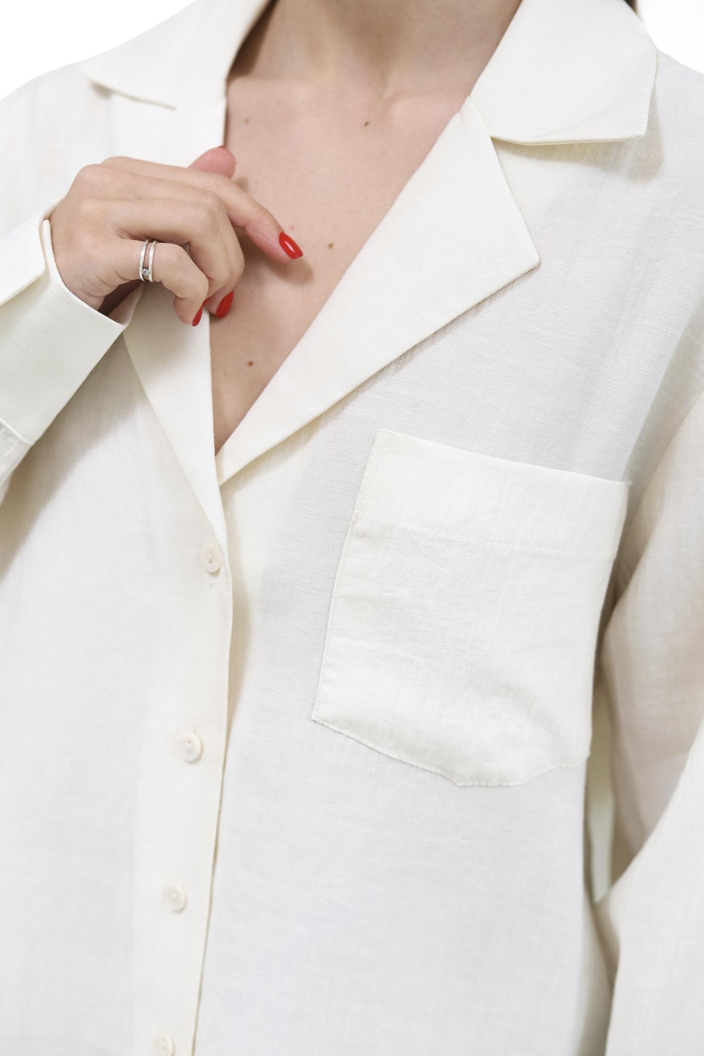 Елегантна сорочка з чітким коміром і довгими рукавами на манжетах з ґудзиками. Практична кишеня на грудях додає функціональності, зберігаючи акуратний вигляд. Ідеальна для ділового стилю або образів у стилі casual і smart-casual, легко поєднується з іншими елементами гардеробу