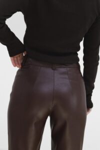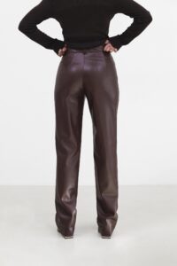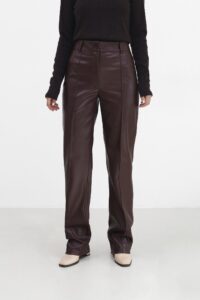Шкіряні штани — стильна база для створення сучасних і трендових образів. Пряма широка посадка надає силуету витонченості та виглядає особливо актуально. Стрілки спереду додають елегантності, а м’який матеріал підкреслює силует і забезпечує комфорт.