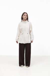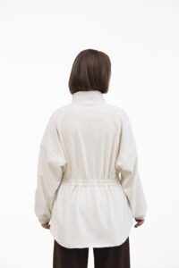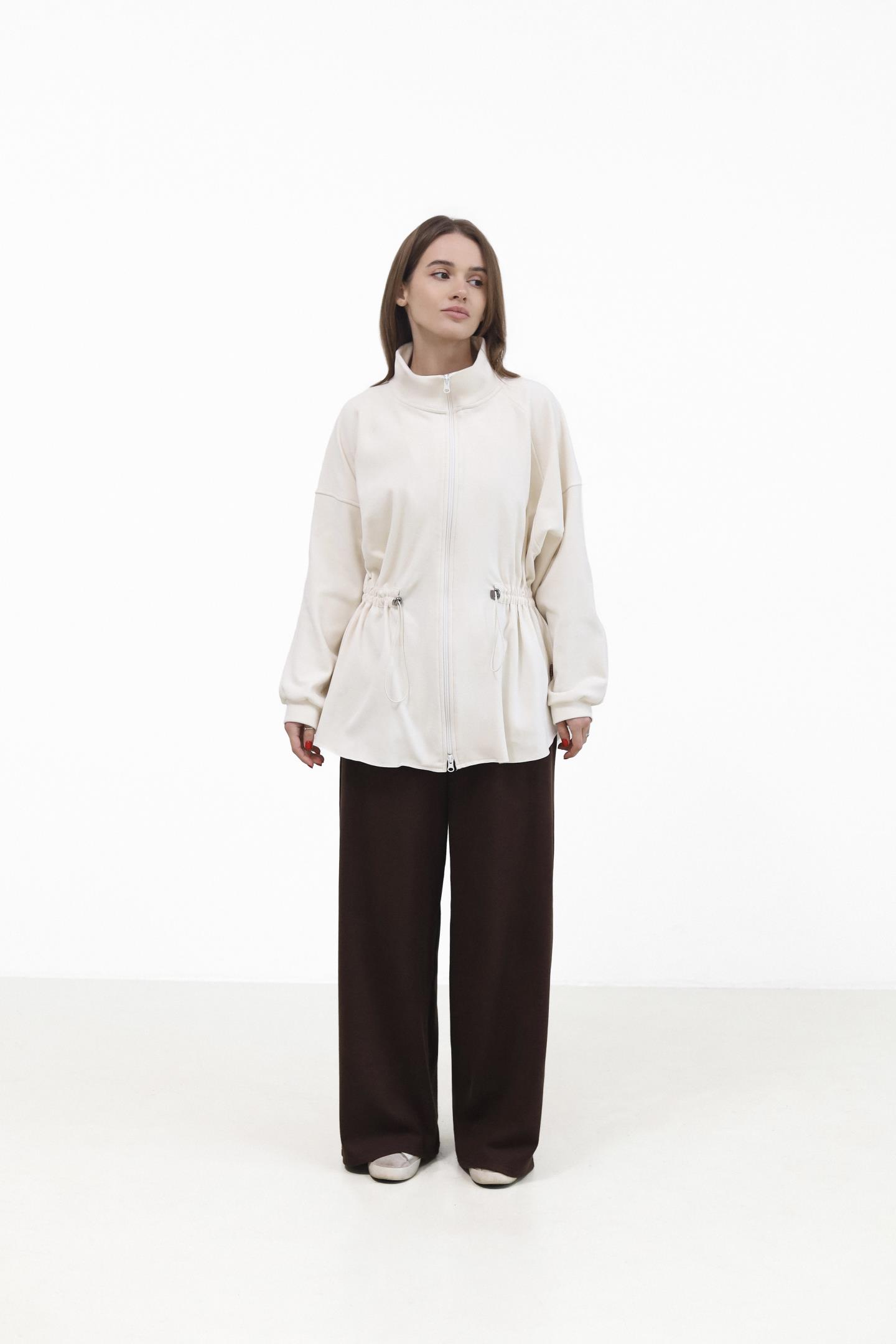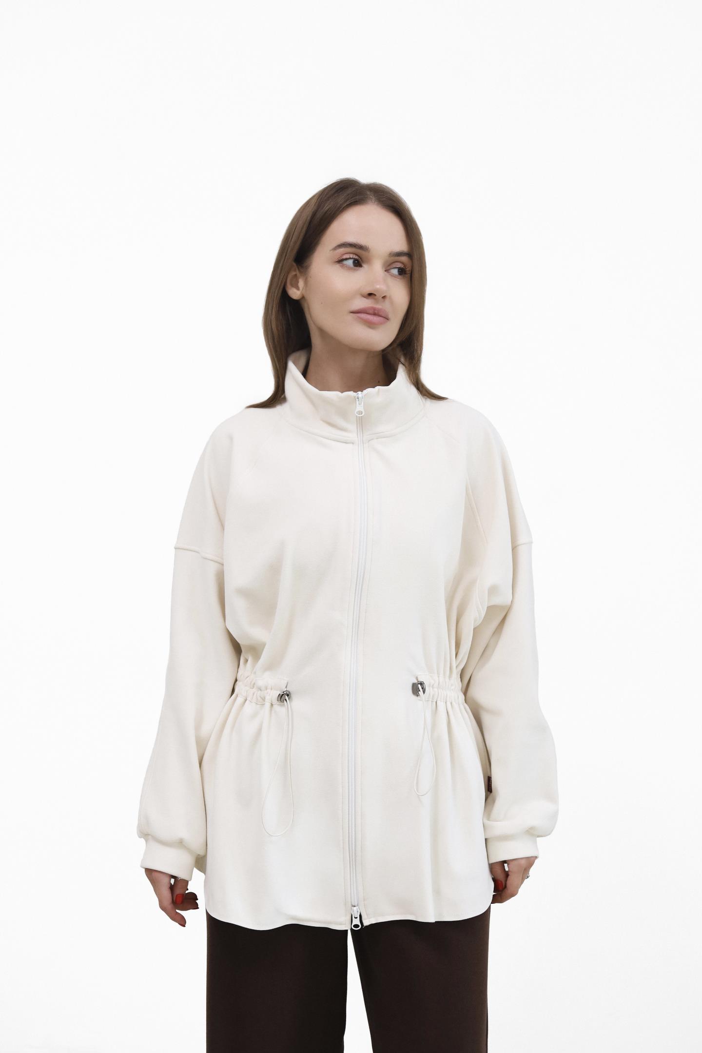 Жіноча худі на блискавці-гармонійне поєднання сучасного крою та стильного образу. Модель оснащена центральною блискавкою та коміром-стійкою, а регульована талія на шнурках підкреслює фігуру. Подовжений заокруглений поділ надає силуету витонченості. Ідеальний вибір для повсякденних і міських образів