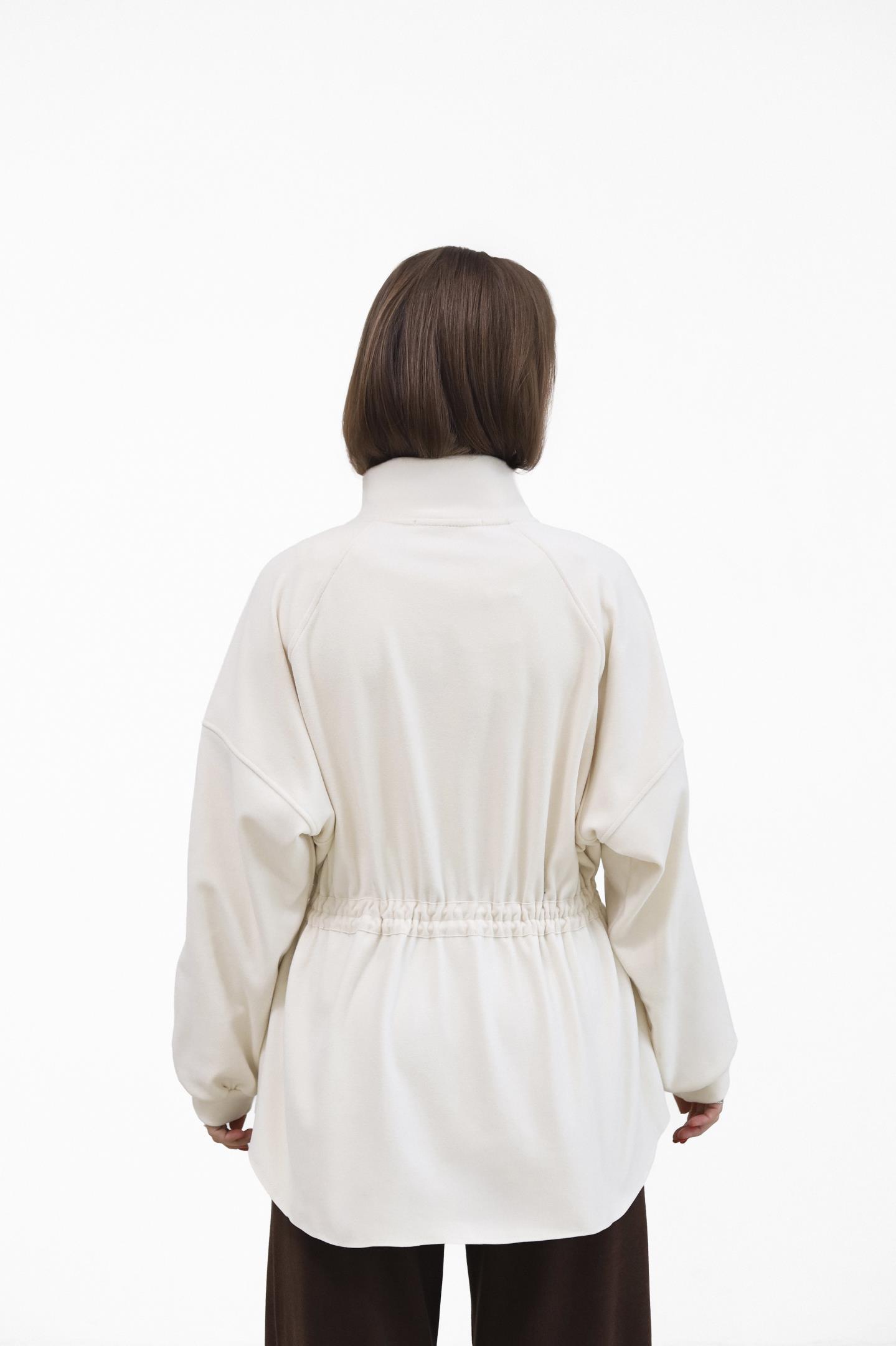 Головна Жінкам Худі, світшоти та толстовки Кофта-худі з витонченою куліскою на талії Молоко