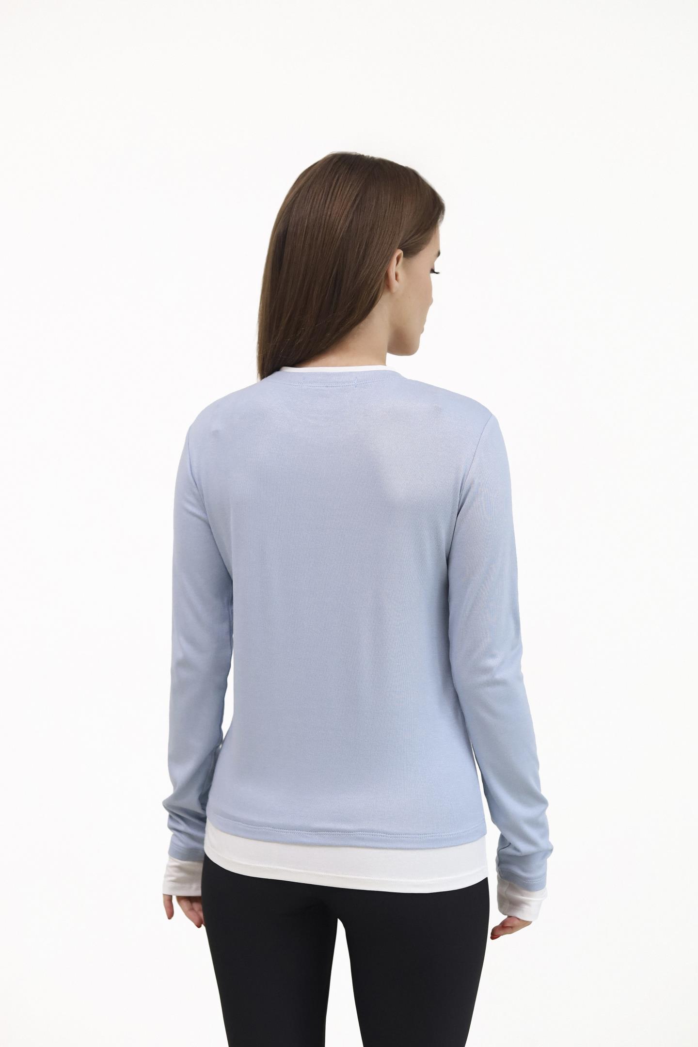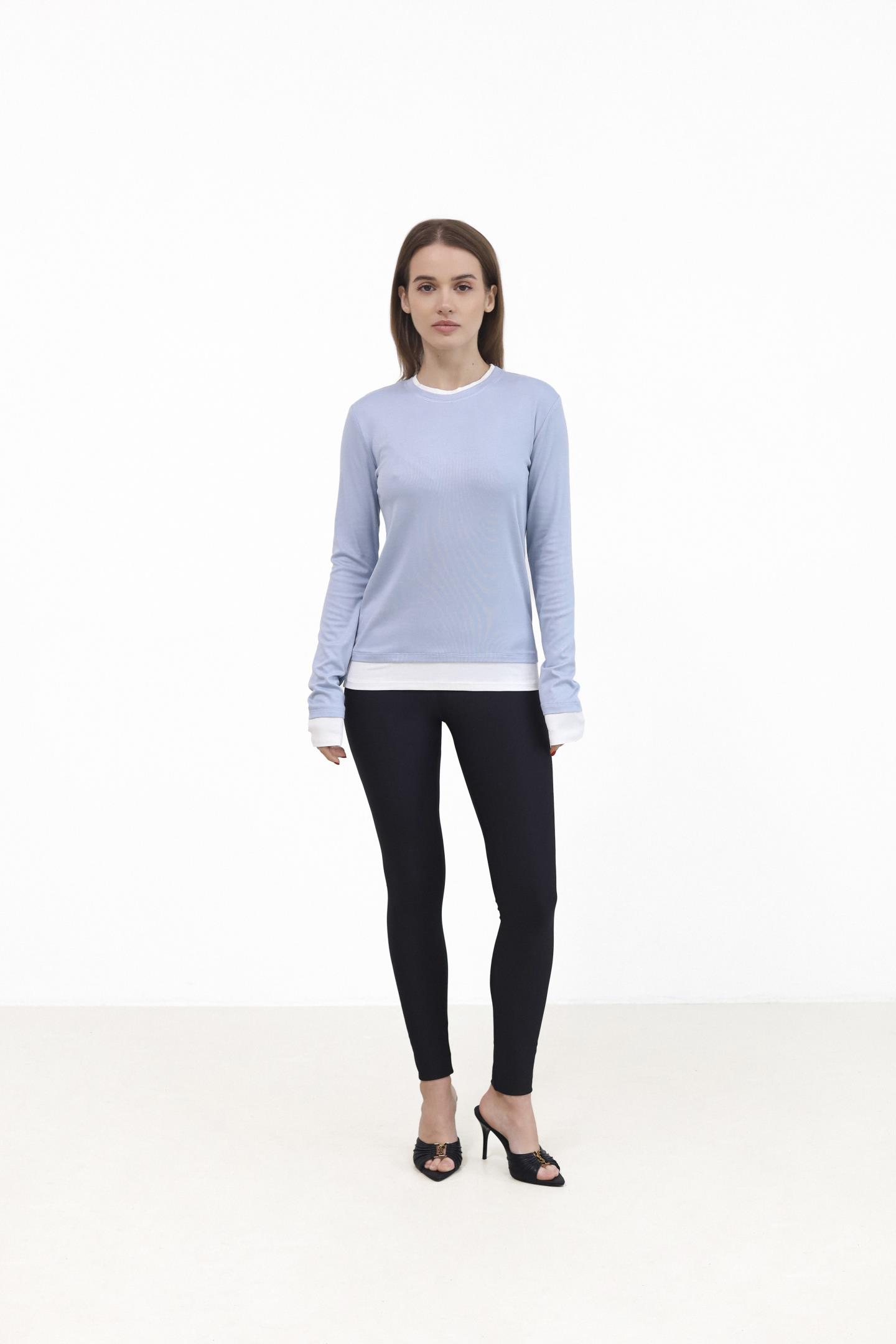 Головна Жінкам Футболки, топи та лонгсліви Лонгслів із контрастною вставкою Блакитний