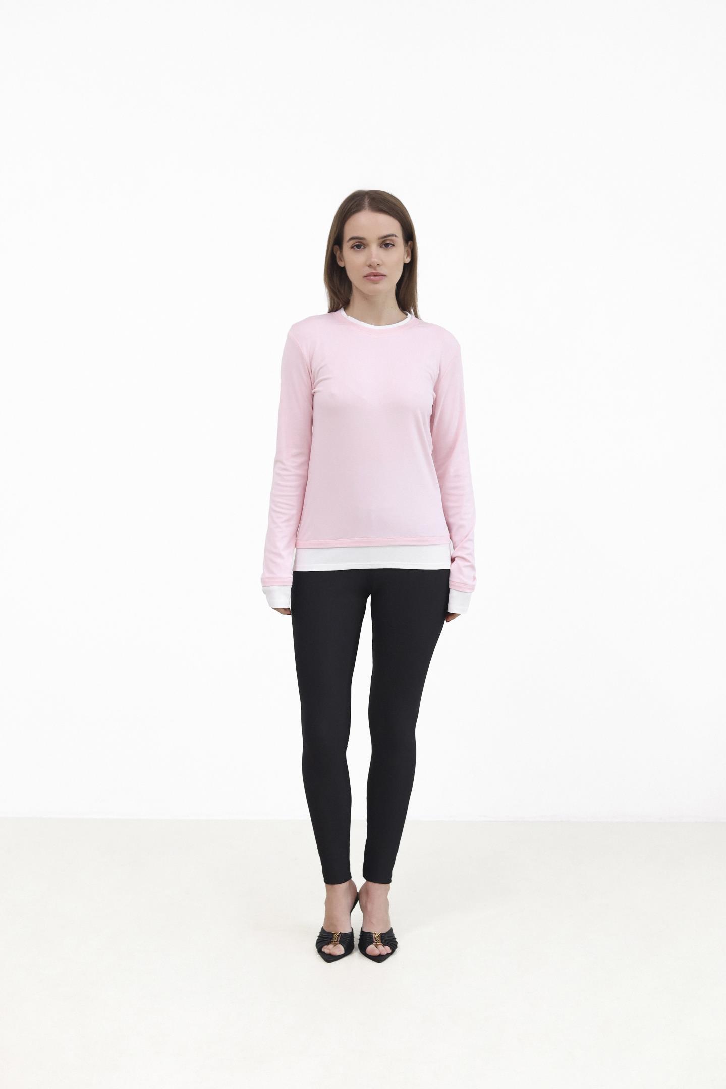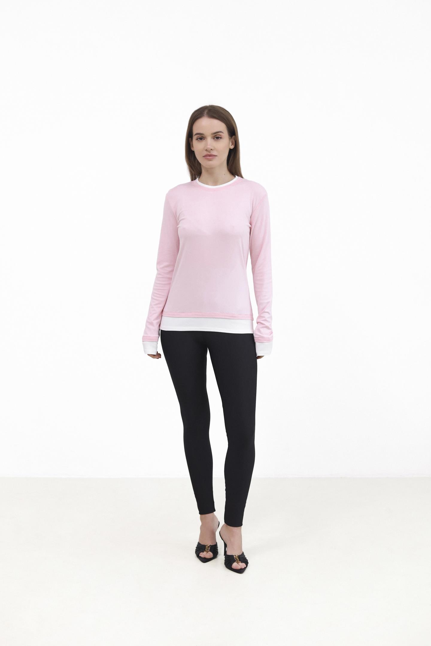 Лонгслів із контрастною вставкою Рожевий