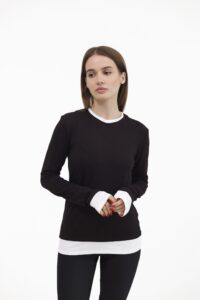 Лонгслів із контрастними вставками — сучасна модель із виразним, але лаконічним дизайном. Нижня контрастна вставка створює ефект багатошаровості та додає образу актуальності. Прямий крій не сковує рухів, а акуратна горловина та якісні шви додають охайності. Стильний і зручний варіант на кожен день