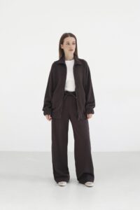 Штани з комфортною посадкою та поясом на м’якій резинці дарують зручність упродовж дня. Легко лягають по фігурі, мають вільнішу сучасну лінію та не стримують рухів. У поєднанні із зіп-худі створюють стильний та продуманий сет, у якому ви почуватиметесь впевнено й невимушено в будь-якому ритмі дня.