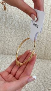 Кілька витончених банглів, об’єднаних оригінальним вузлом, створюють ефект багатошаровості та додають зап’ястю динамічності й блиску. Легка текстура поверхні підкреслює гру світла, роблячи аксесуар помітним, але не перевантаженим. Ідеальний вибір для щоденного носіння та святкових образів