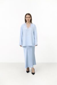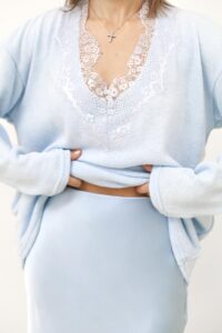 Ніжний светр з ажурним декольте Блакитний