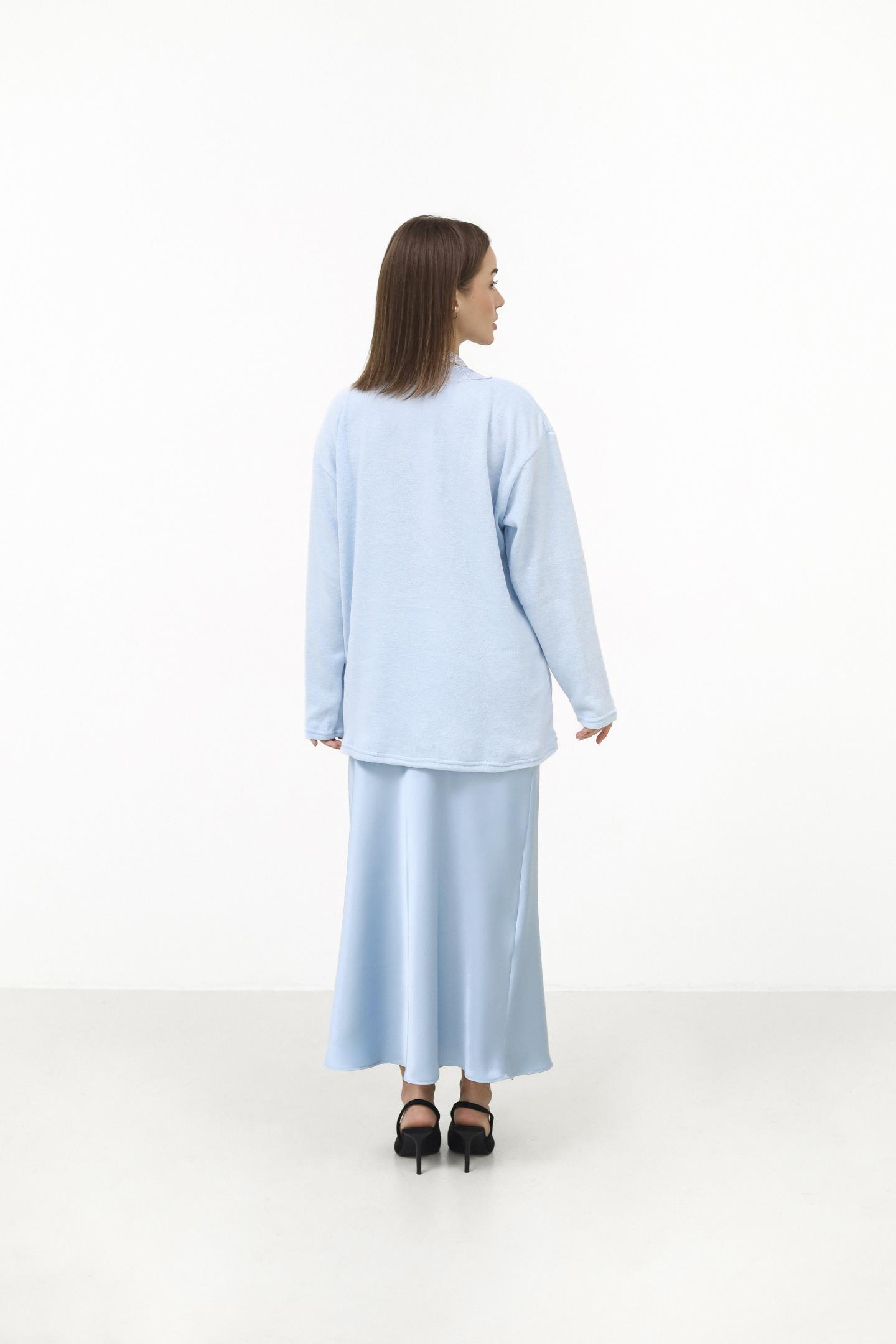 Головна Жінкам Худі, світшоти та толстовки Ніжний светр з ажурним декольте Блакитний