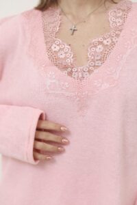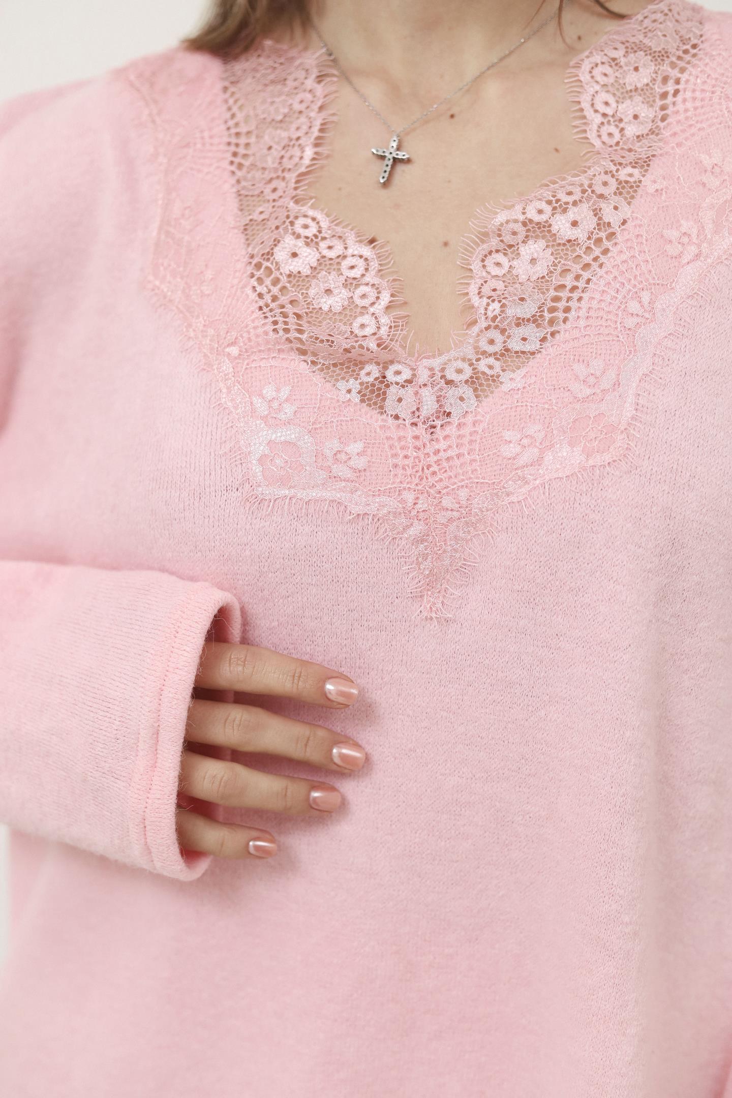 Ніжний светр з ажурним декольте Рожевий