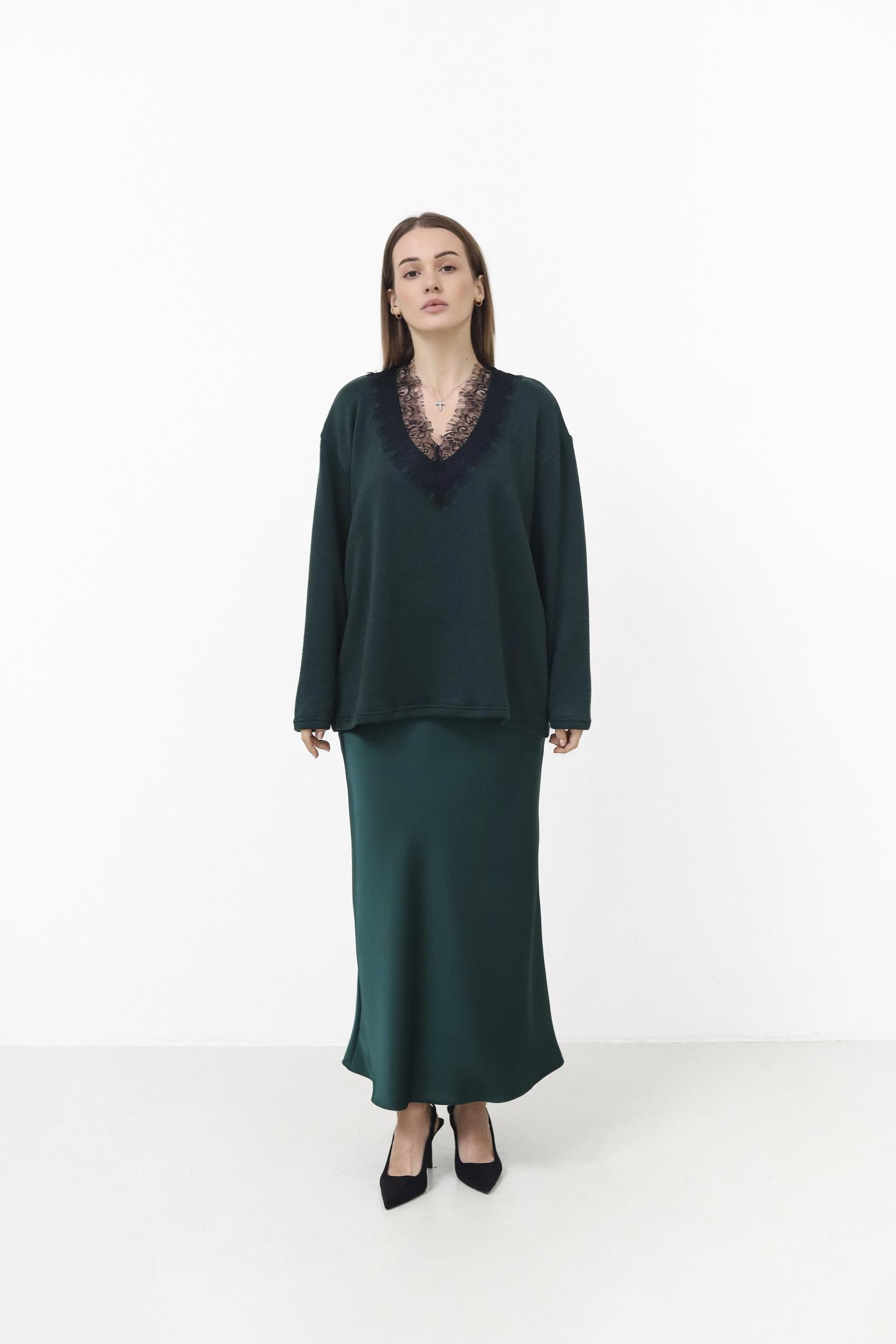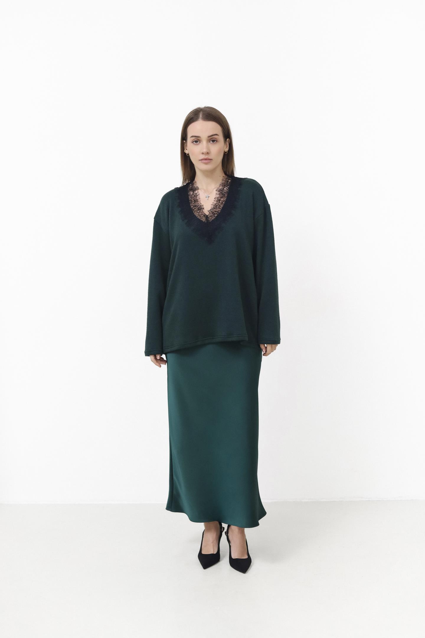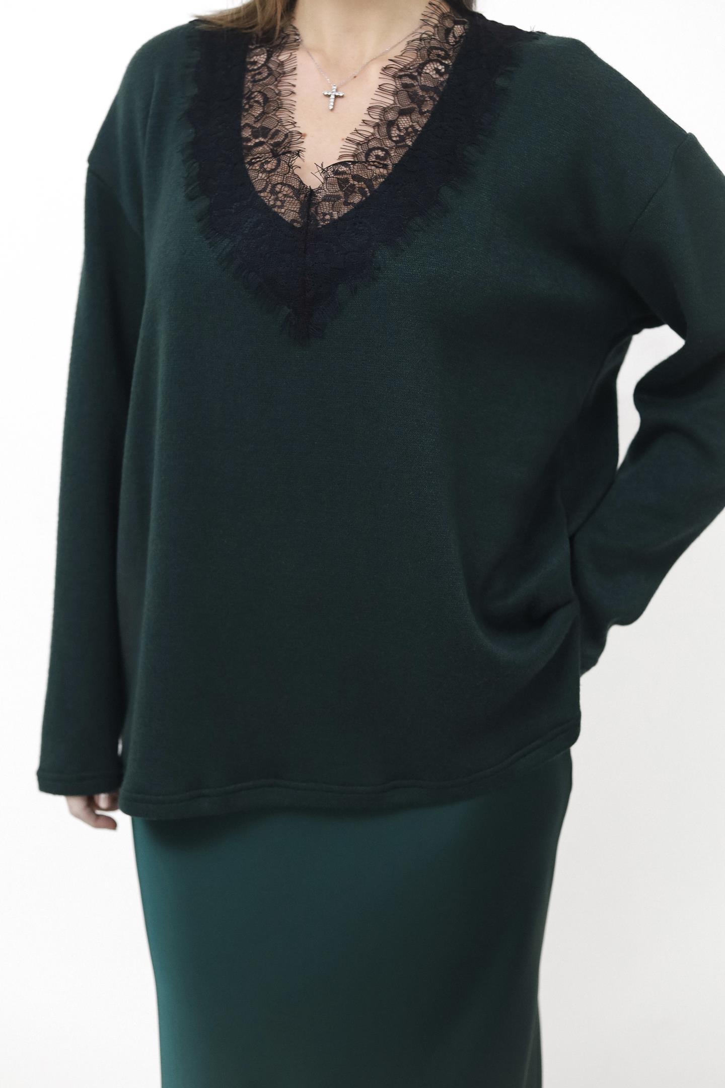 Головна Жінкам Худі, світшоти та толстовки Ніжний светр з ажурним декольте Смарагд