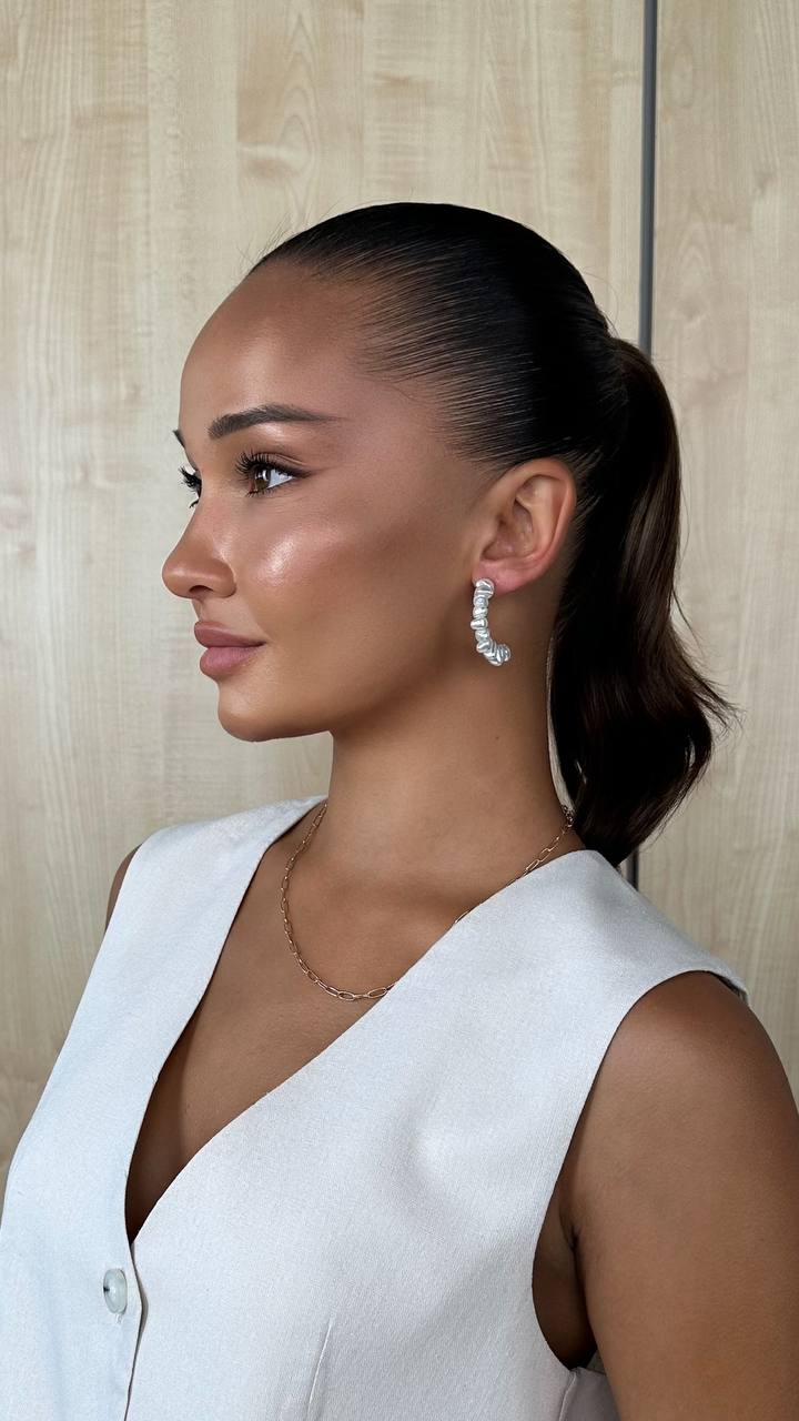 Сережки-напівкільця з перлинами у сучасній інтерпретації класики. Низка нерівних «барокових» перлин на золотистій основі створює витончений об’єм і текстуру. Надійні пусети забезпечують зручне прилягання, а легкий дизайн робить сережки універсальним акцентом для будь-якого образу