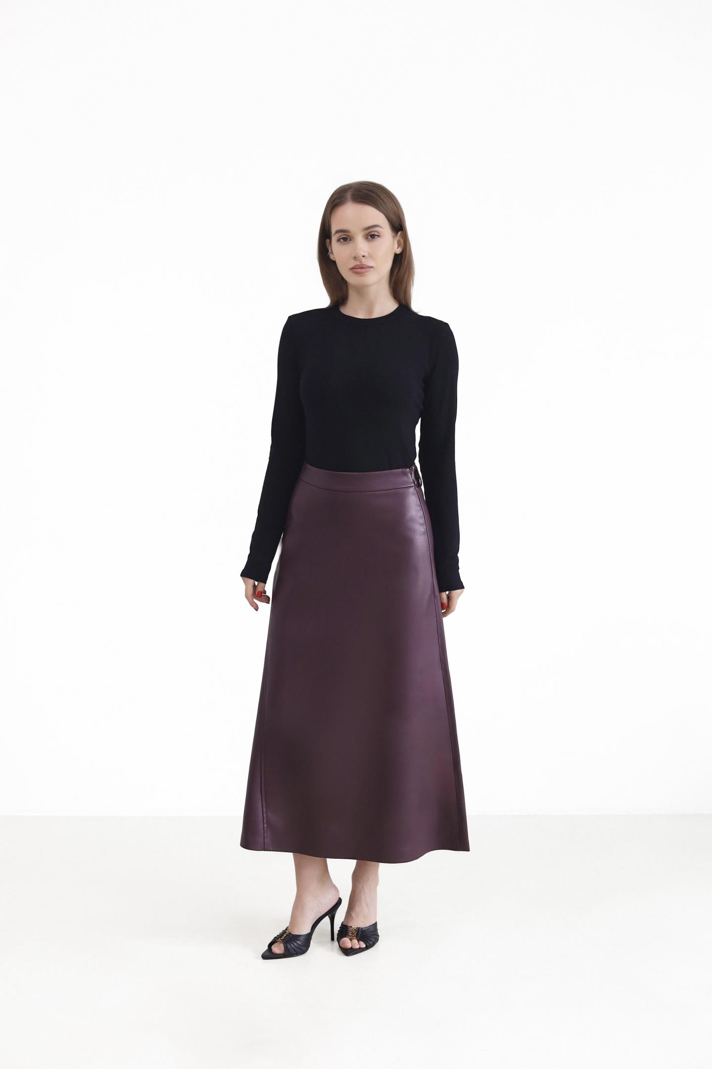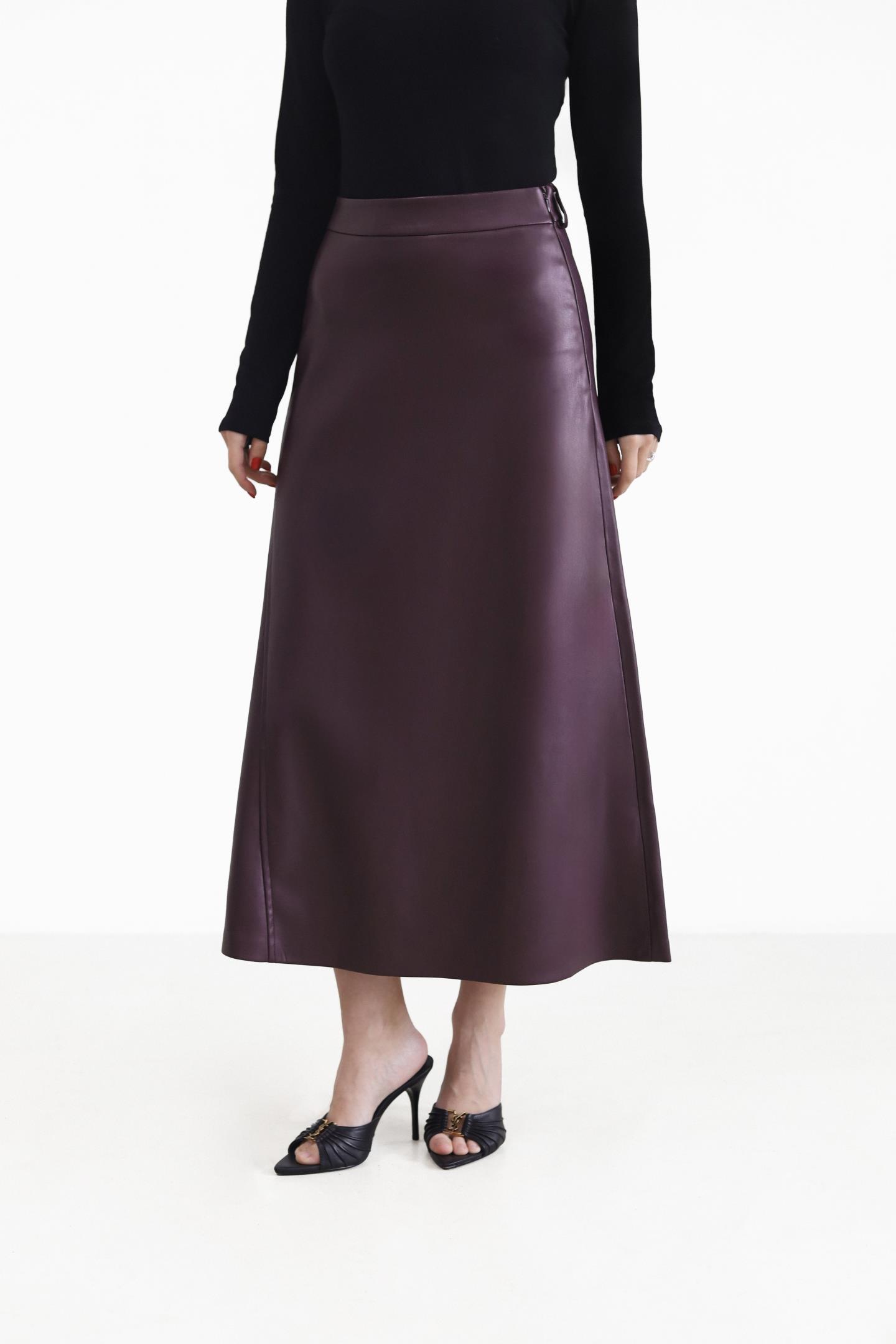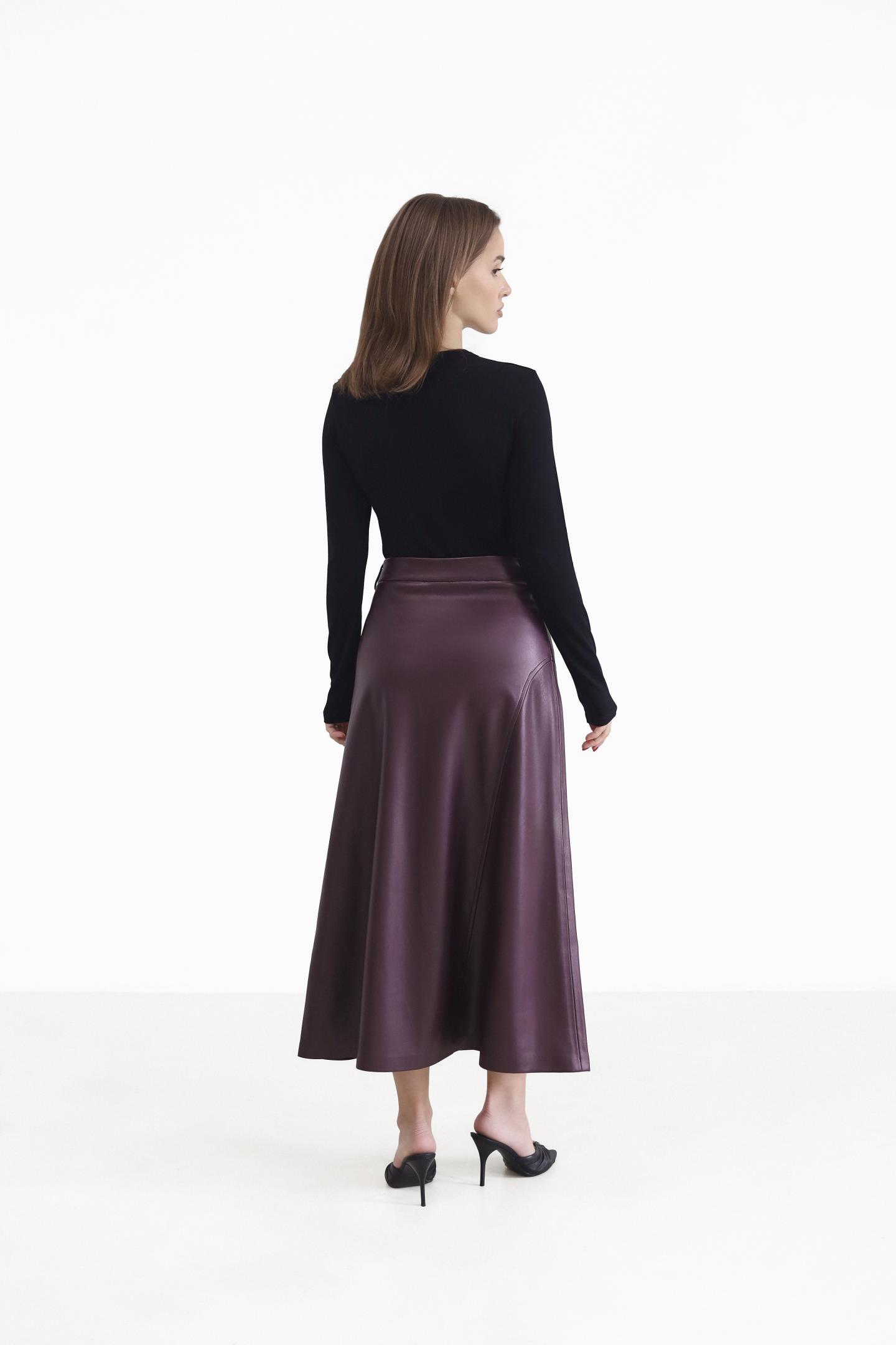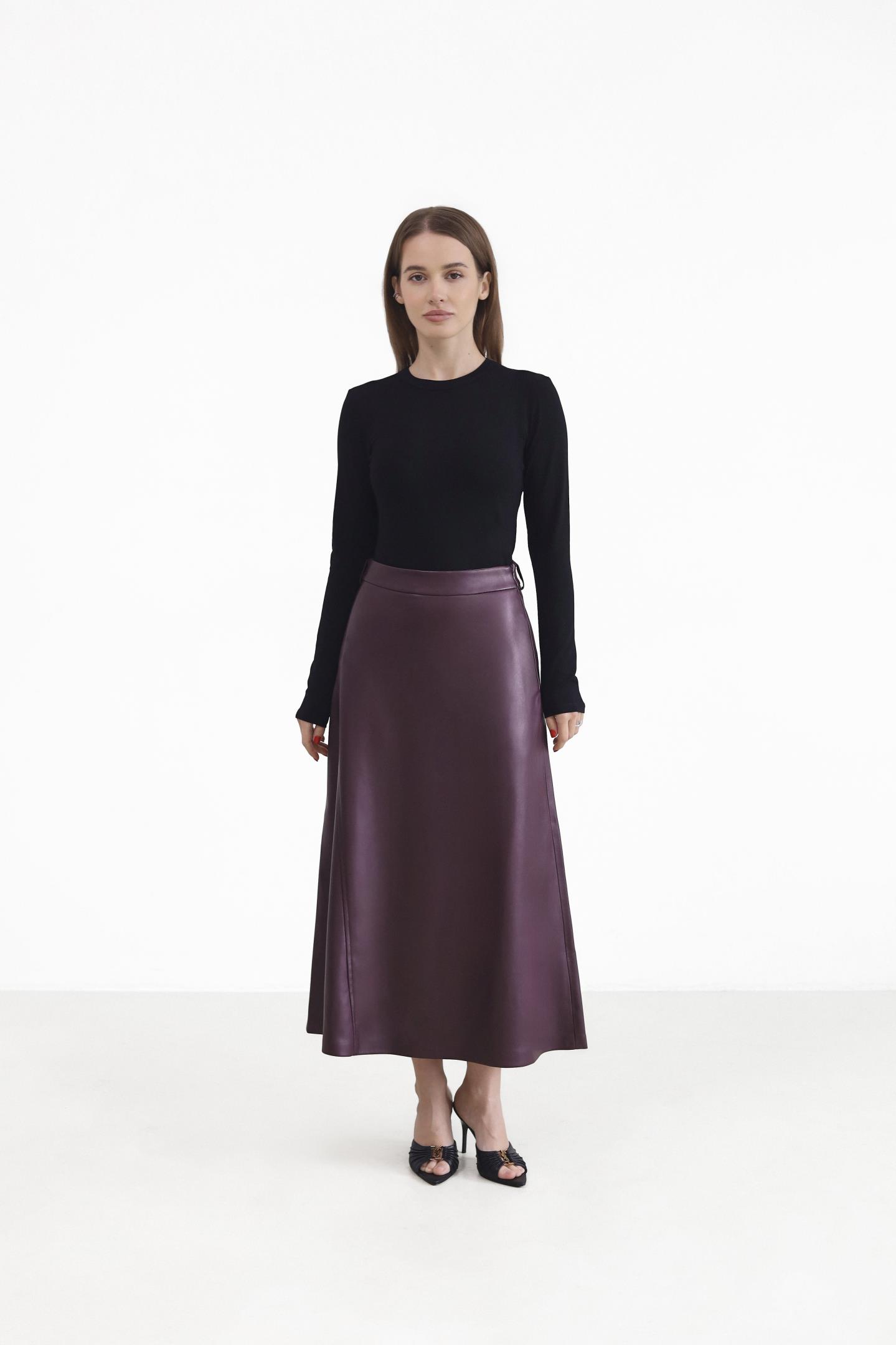 Головна Жінкам Спідниці Шкіряна спідниця міді з розкльошеним кроєм Бордо