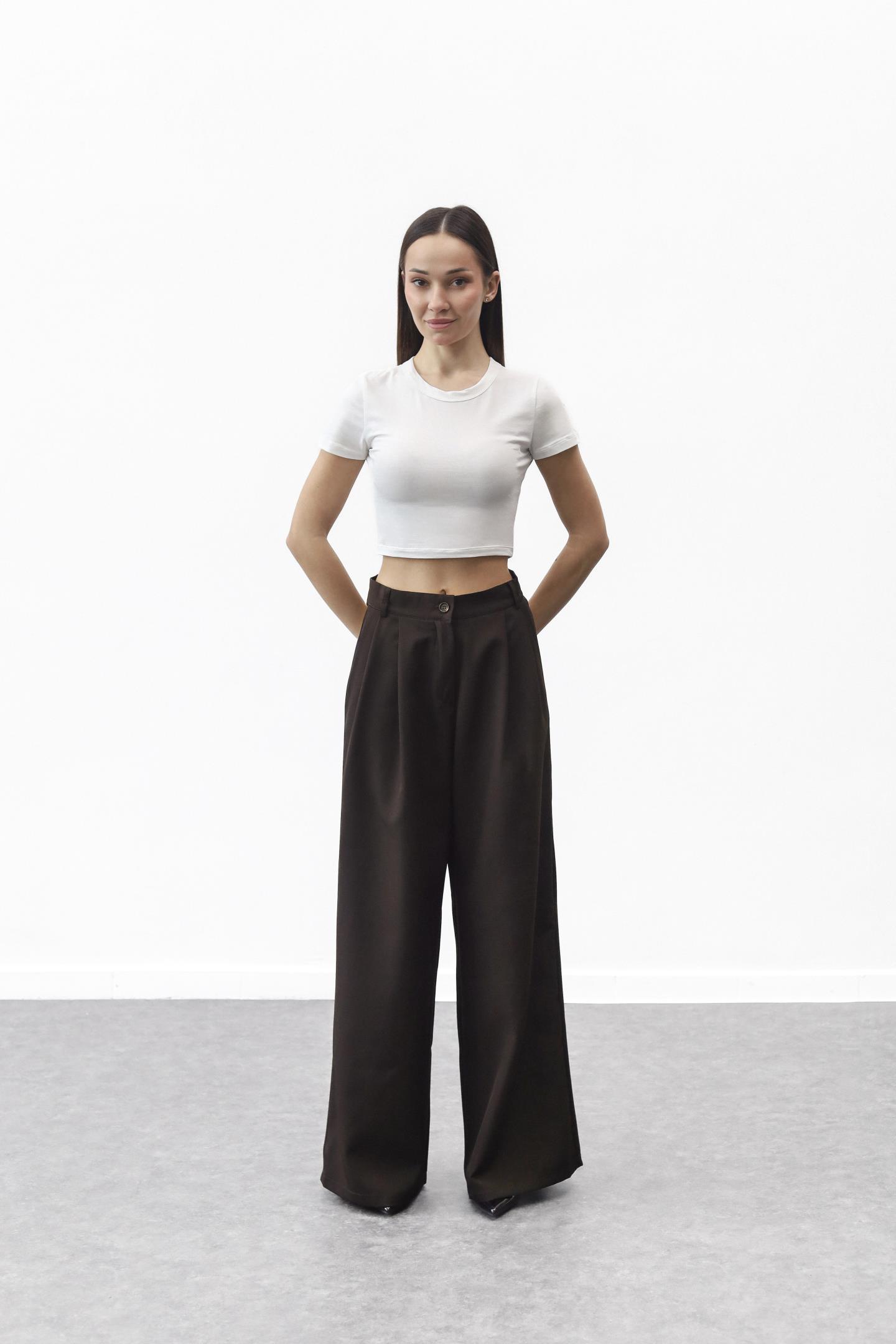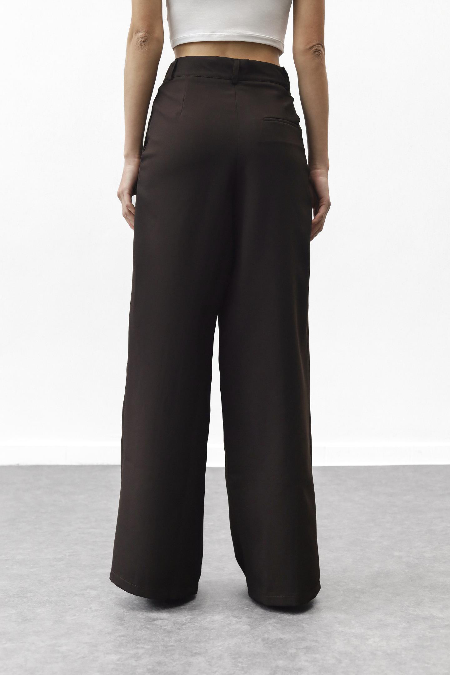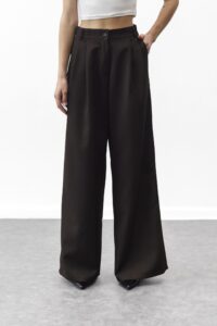 Штани, розширені донизу, створюють елегантний силует.Акцентні бокові лінії візуально подовжують ноги та підкреслюють талію. М’яка тканина дарує комфорт і свободу рухів, а сучасний фасон пасує для щоденних образів, і до моментів, коли хочеться виглядати особливо.