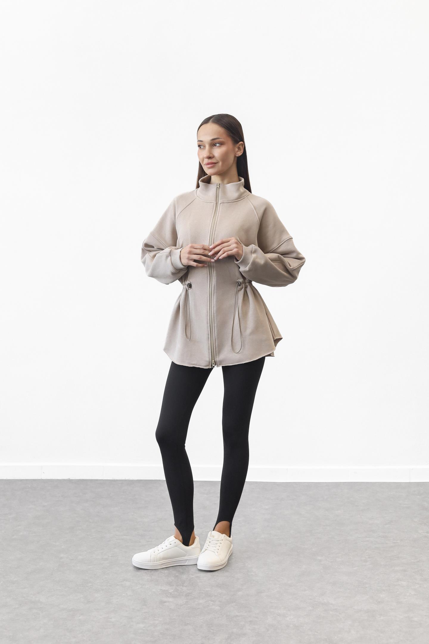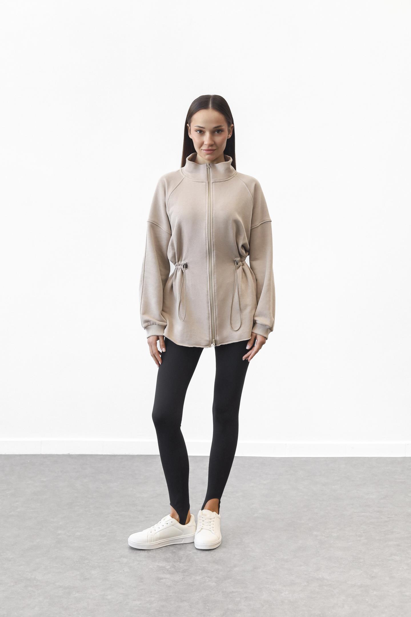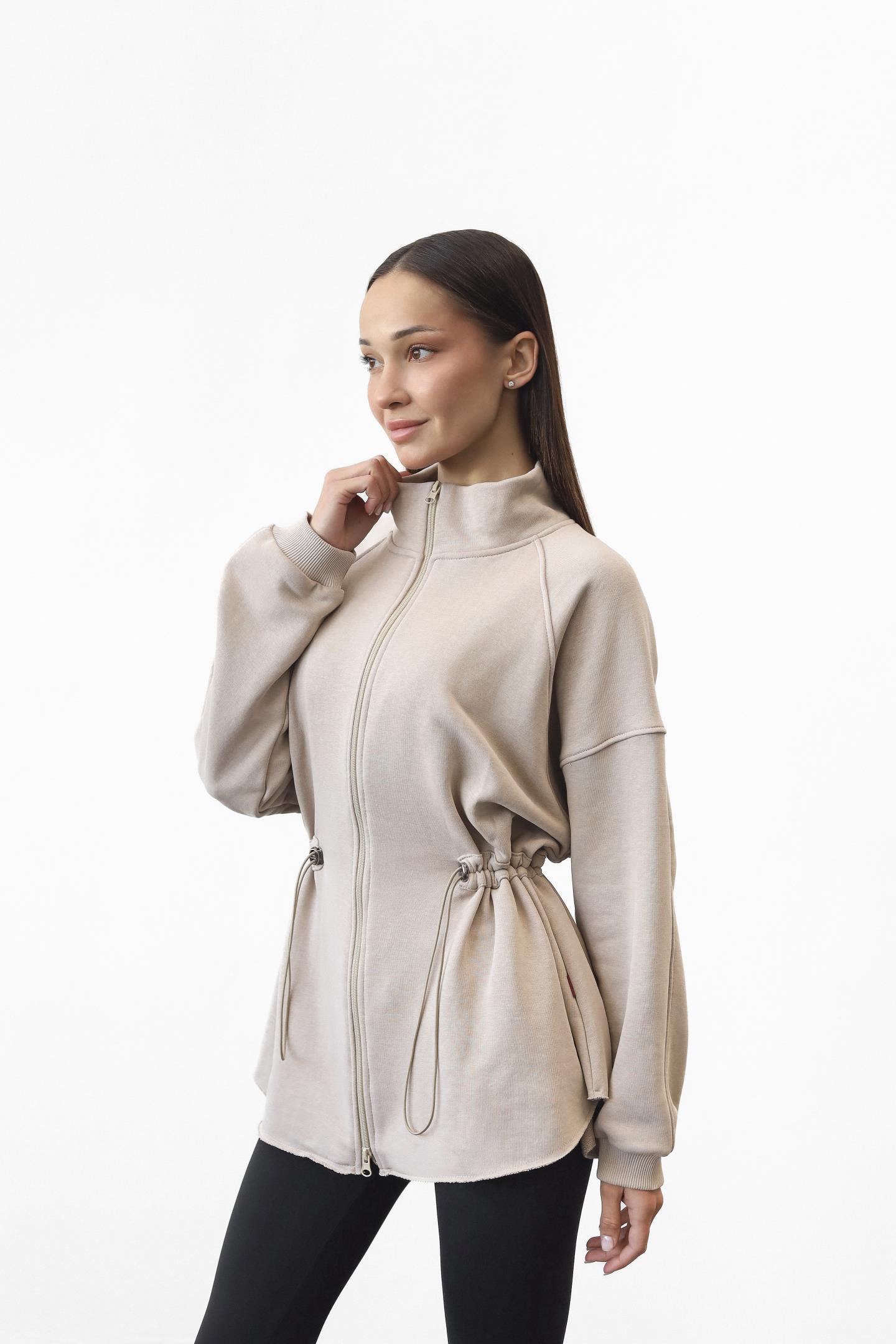 Стильна жіноча худі на блискавці з м’якої тринітки — еластична, комфортна та зручна. Подовжений силует і регульована талія на кулісках створюють витончений образ, який легко поєднується з будь-яким стилем, роблячи цю модель must-have для повсякденних образів
