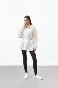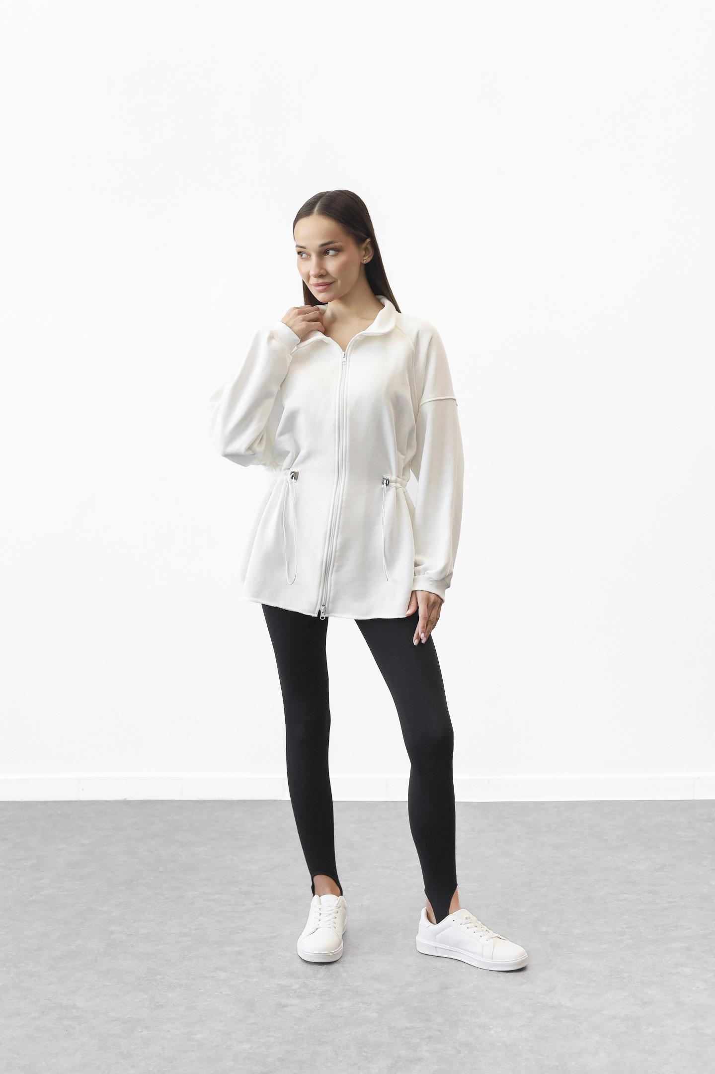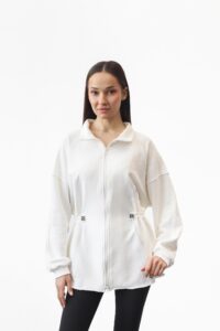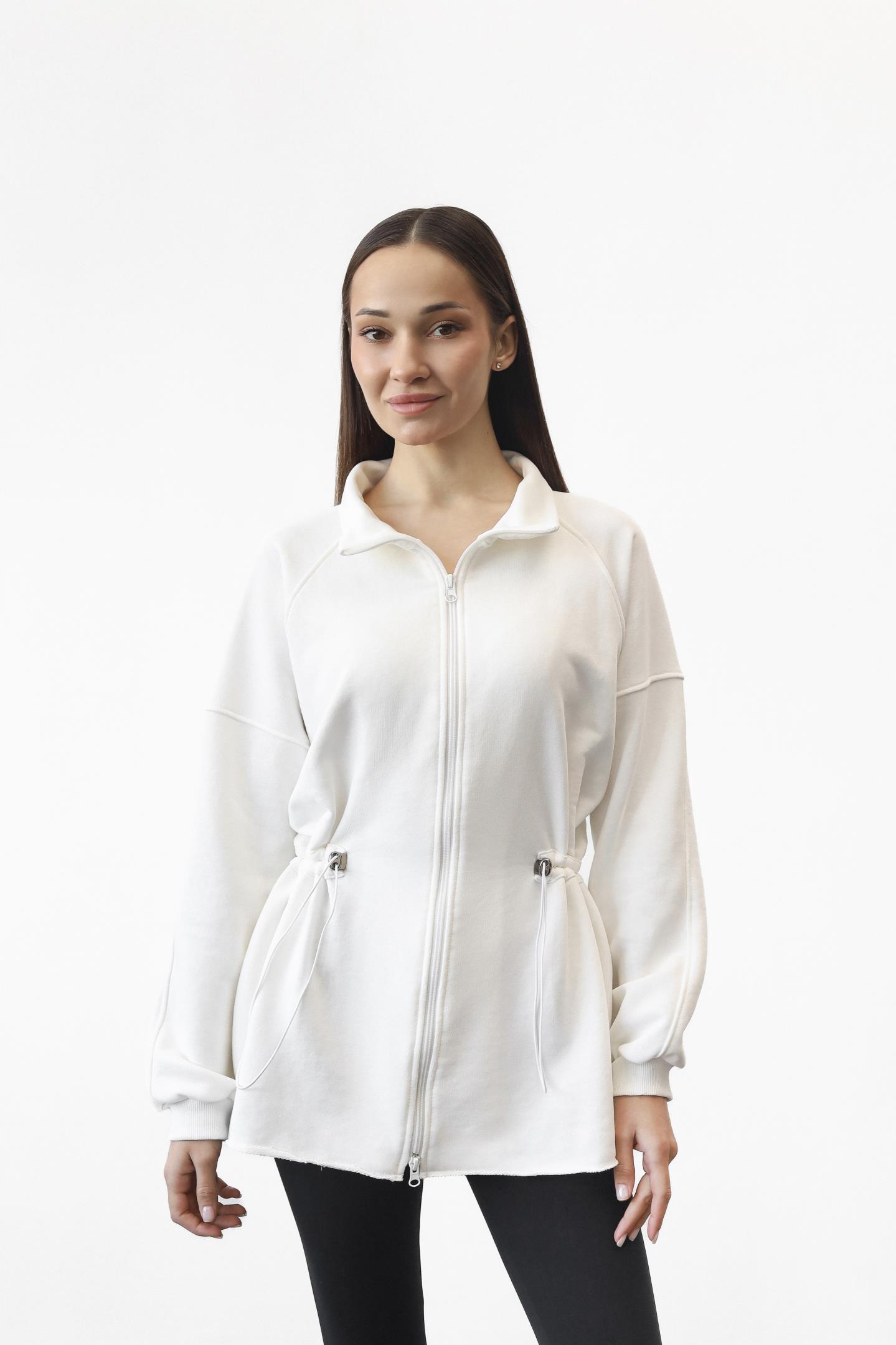 Стильна жіноча худі на блискавці з м’якої тринітки — еластична, комфортна та зручна. Подовжений силует і регульована талія на кулісках створюють витончений образ, який легко поєднується з будь-яким стилем, роблячи цю модель must-have для повсякденних образів