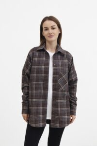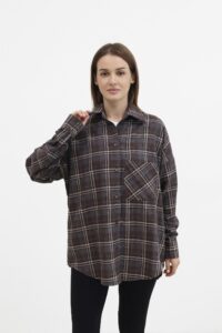 Головна Жінкам Сорочки Стильна картата жіноча сорочка Капучино