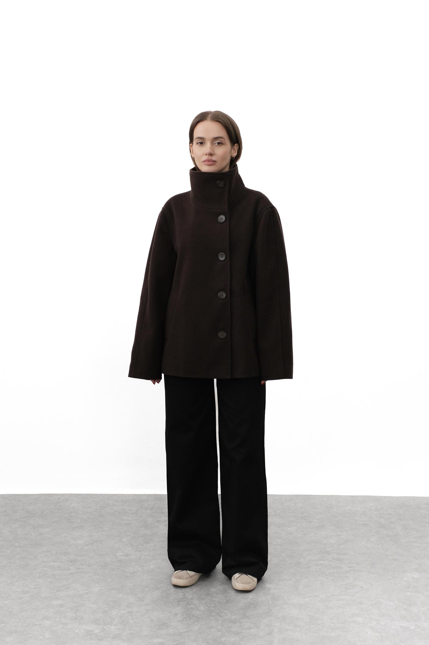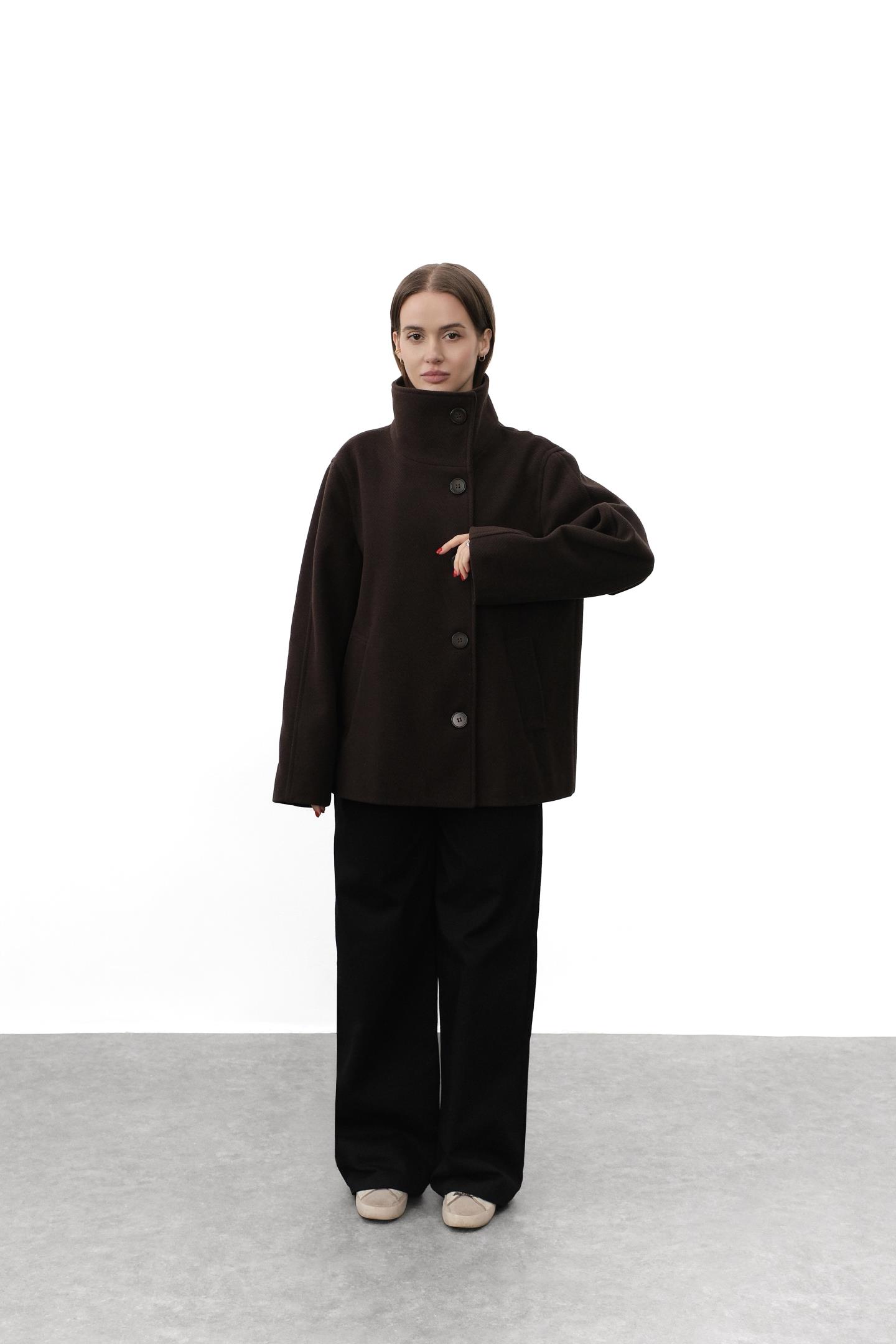 Головна Жінкам Верхній одяг Пальта Стильне укорочене пальто Шоколад