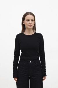 Базовий лонгслів у рубчик, який стане незамінним у гардеробі. М’яко облягає фігуру, не просвічує та забезпечує комфорт протягом дня. Прямий крій і акуратна горловина роблять його універсальним — ідеальний вибір для будь-якого повсякденного образу.