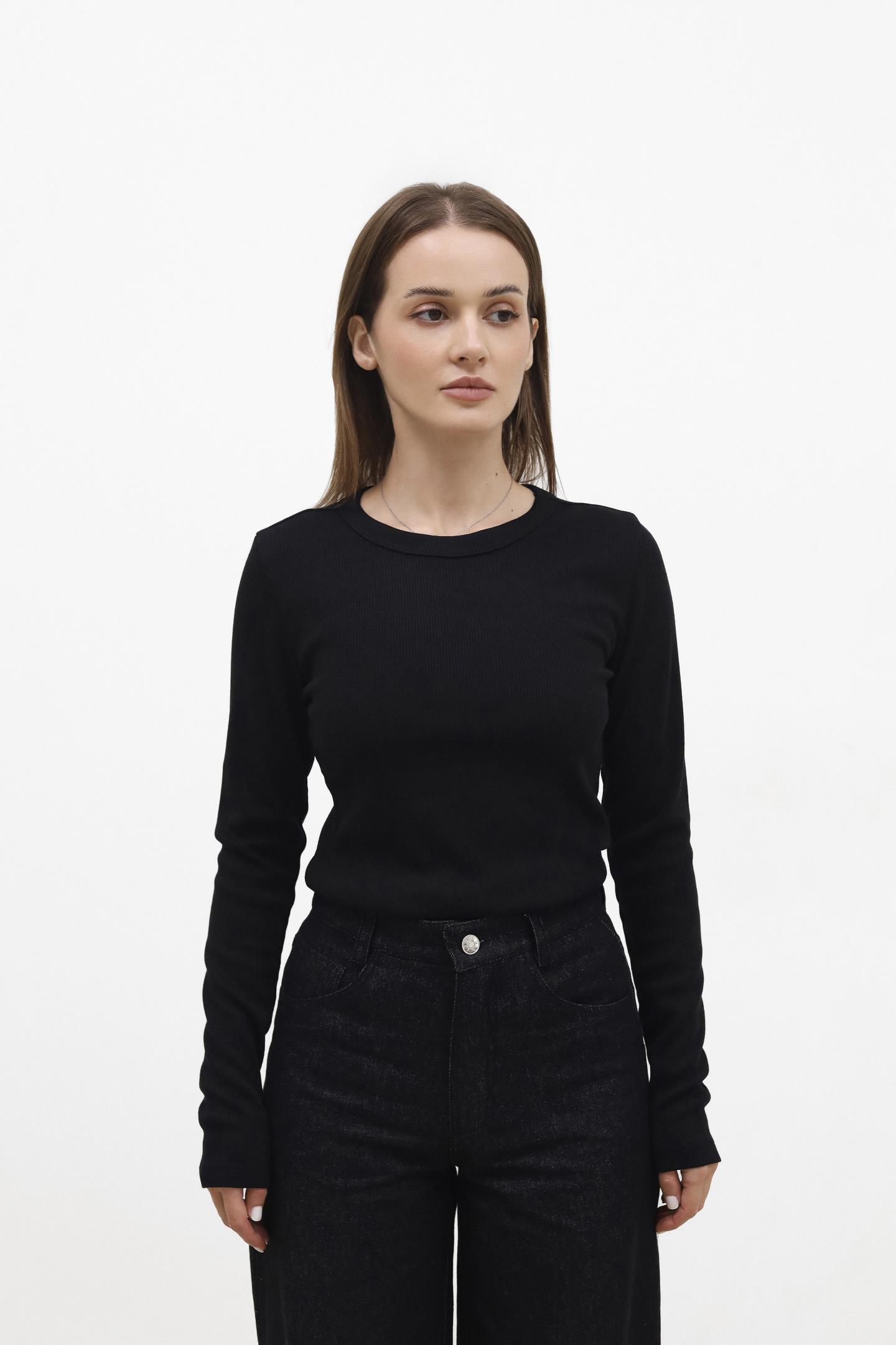Головна Жінкам Футболки, топи та лонгсліви Стильний базовий лонгслів Чорний