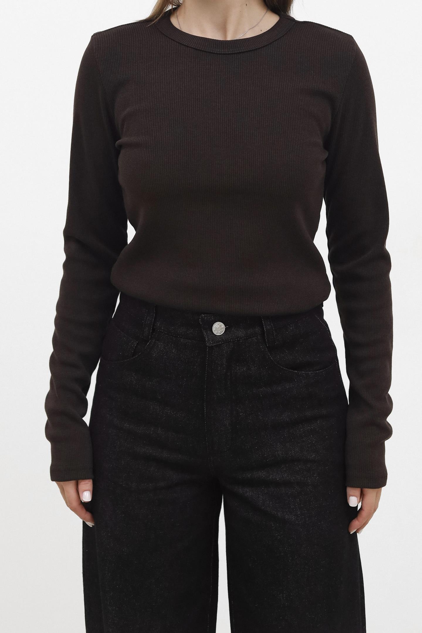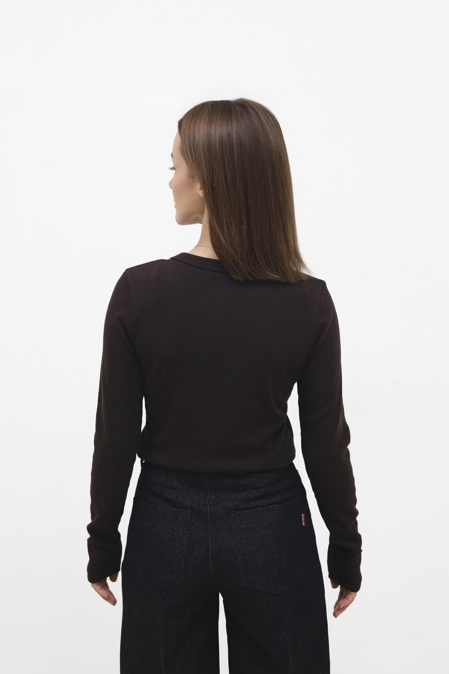 Головна Жінкам Футболки, топи та лонгсліви Стильний базовий лонгслів Шоколад