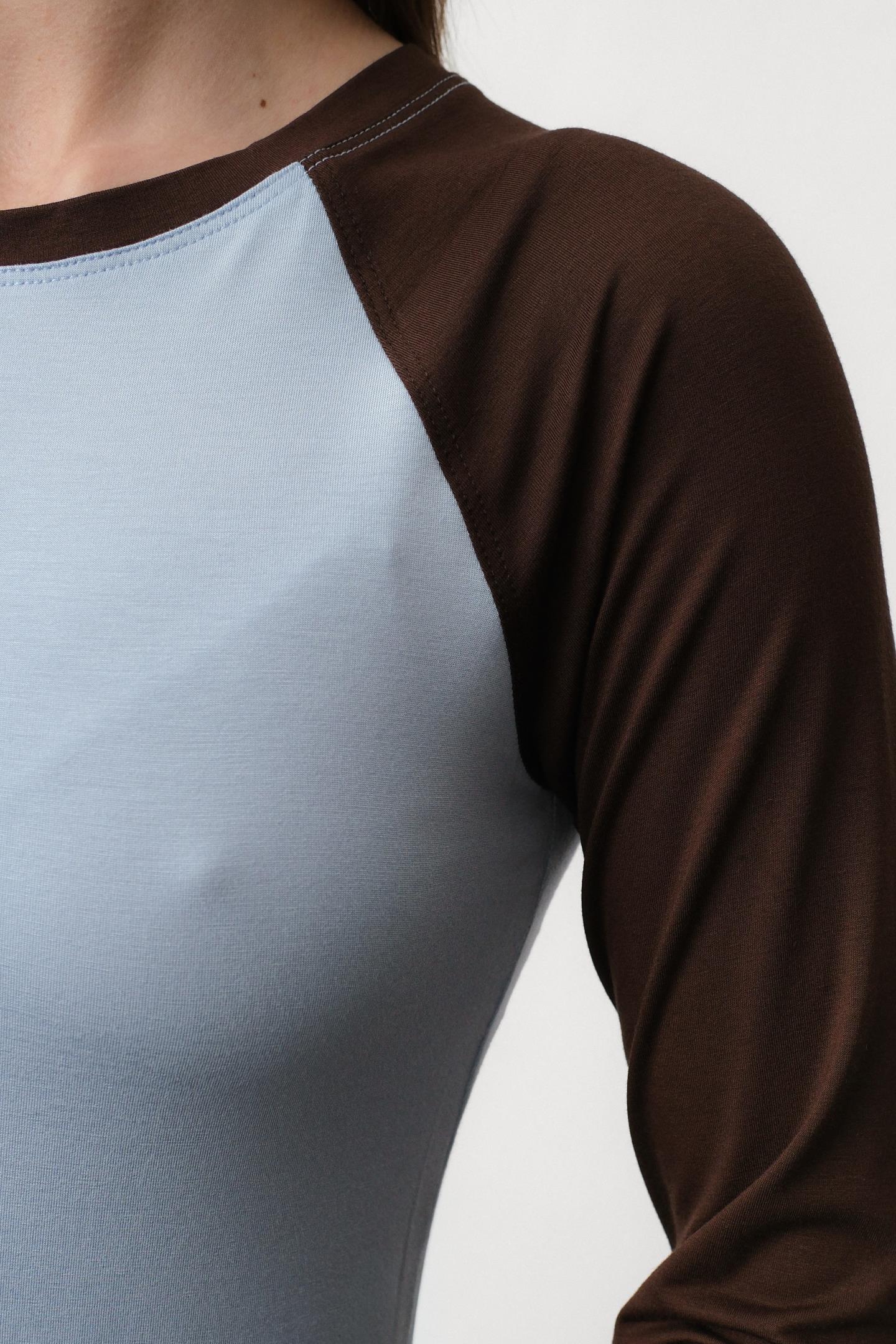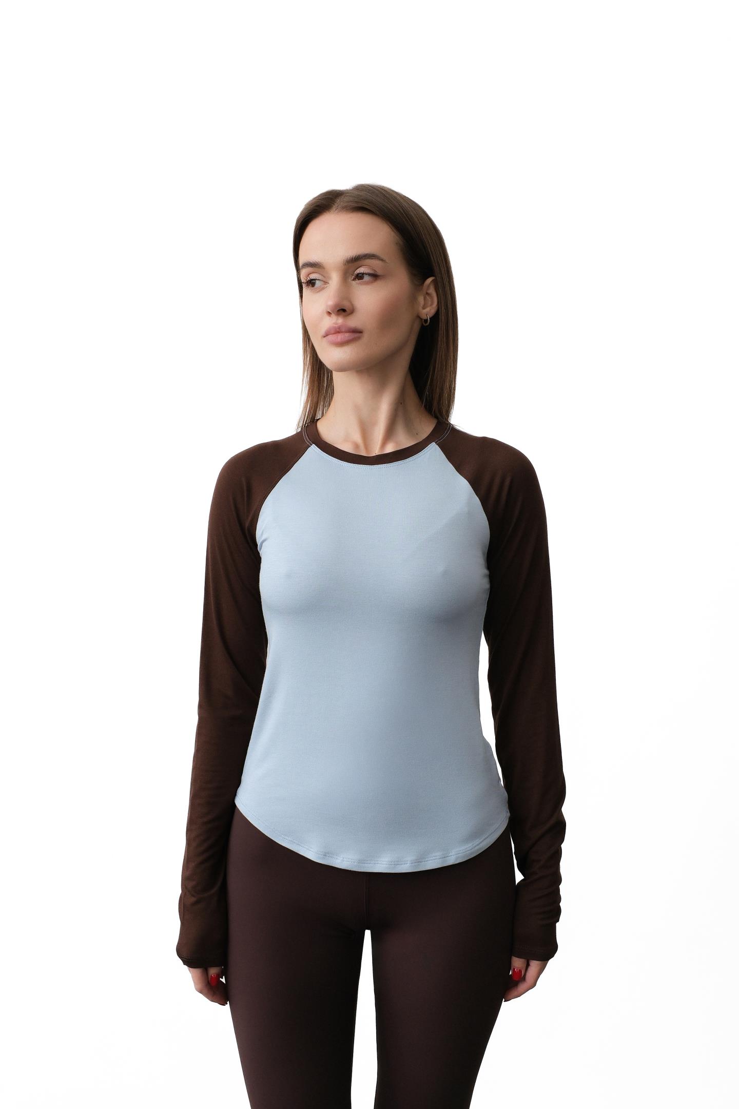 Головна Жінкам Футболки, топи та лонгсліви Стильний двоколірний лонгслів реглан Блакитний