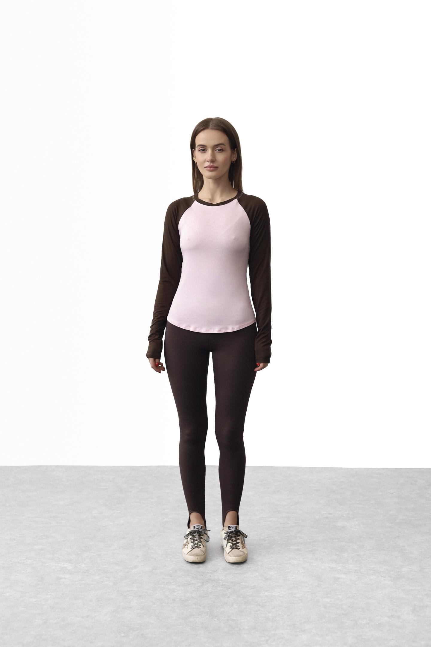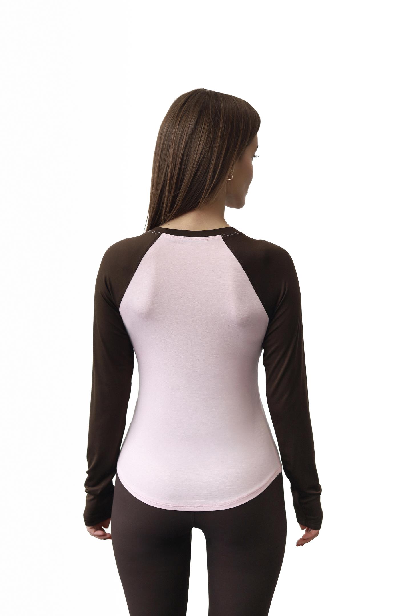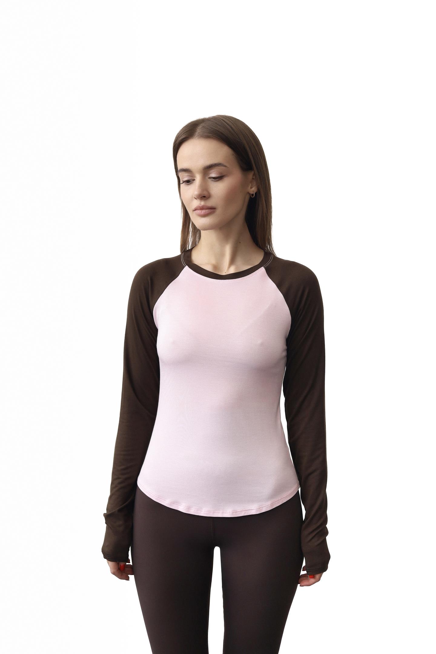 Головна Жінкам Футболки, топи та лонгсліви Стильний двоколірний лонгслів реглан Рожевий