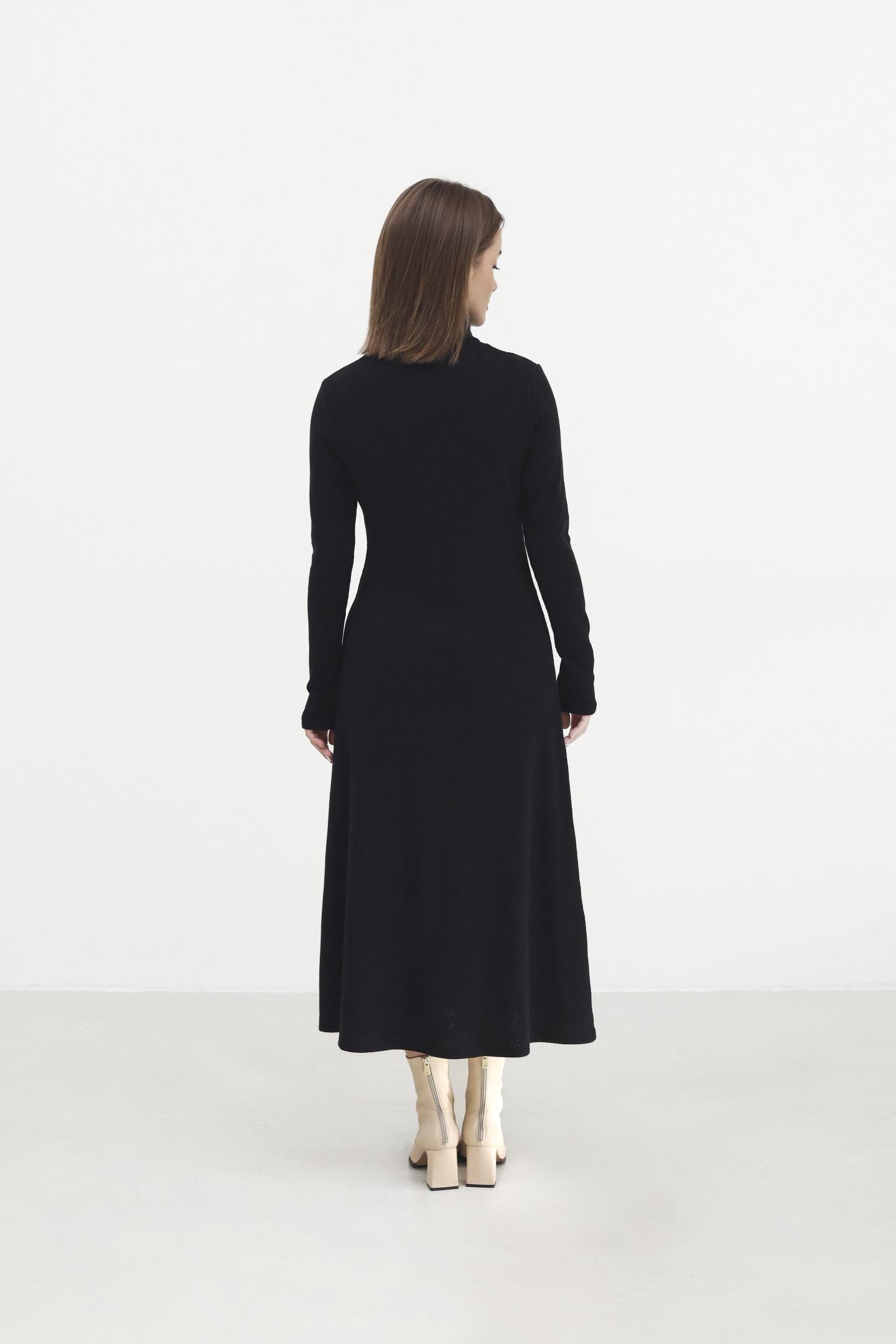 Трикотажна сукня з плавним розширенням донизу - комфортна й стильна модель на кожен день. М’який трикотаж, закрита горловина та довгі рукави забезпечують тепло й зручність.Лаконічний силует легко поєднується з різним взуттям та аксесуарами.