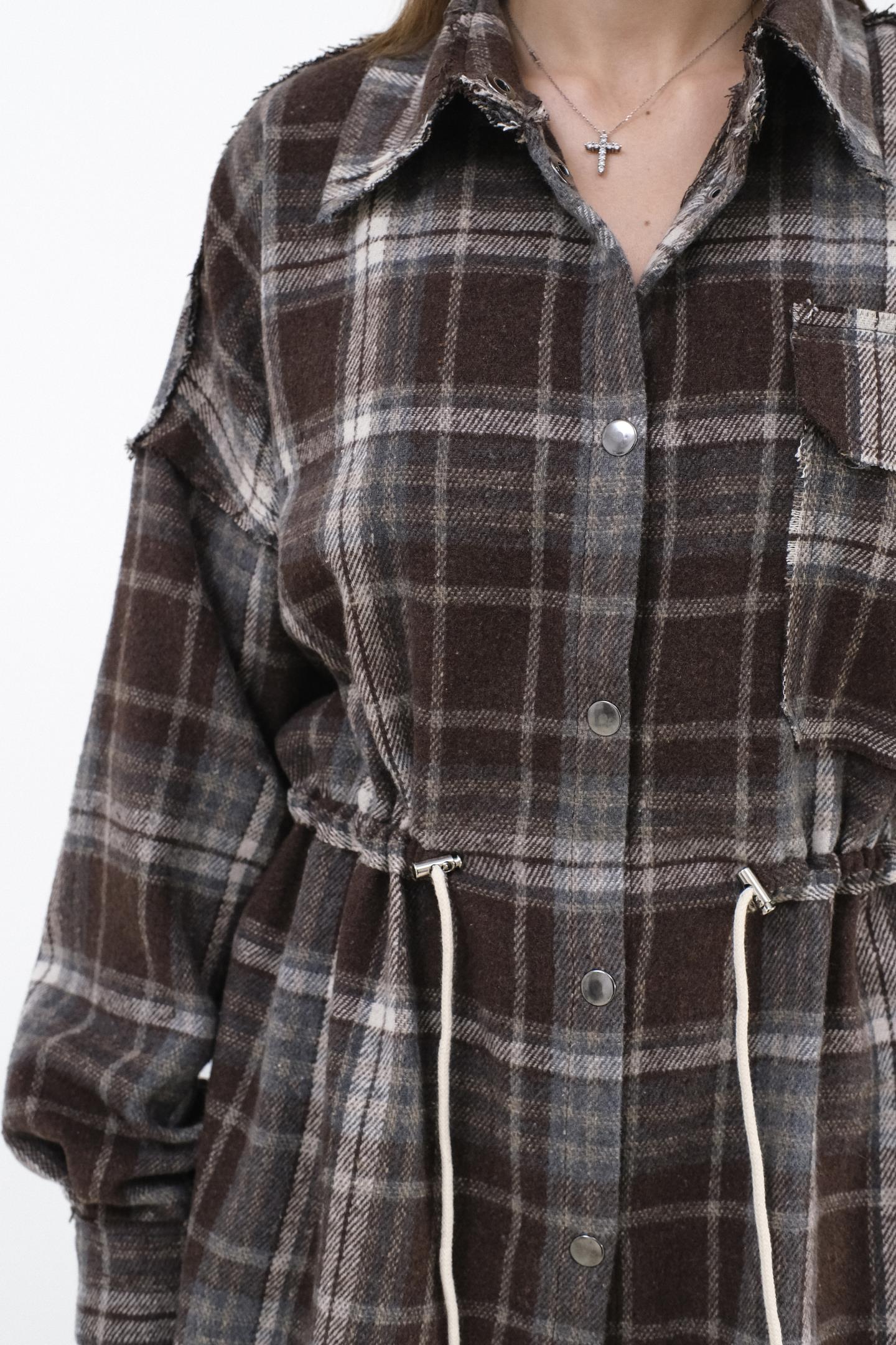 Тепла сорочка з класичним вирізом — універсальний елемент для створення різноманітних луків. Регульована талія підкреслює фігуру та створює елегантний силует.