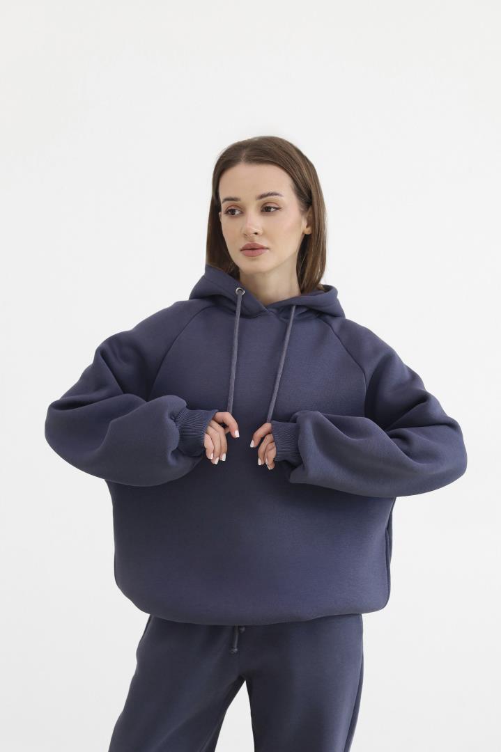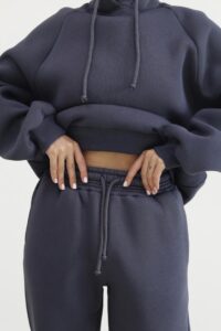 Головна Жінкам Спортивні костюми Теплий жіночий костюм з худі та джогерами Антрацит