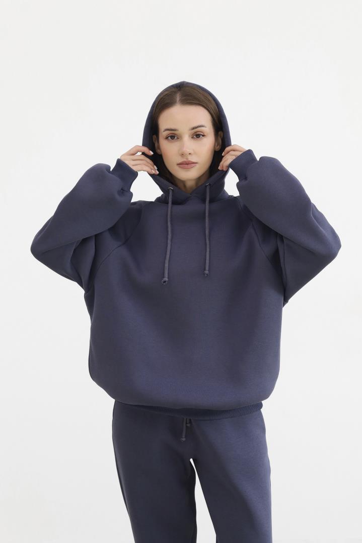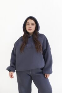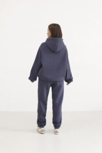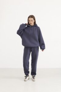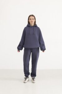М’який жіночий костюм із бавовни поєднує затишок і сучасний дизайн. Худі з капюшоном та джогери з еластичним поясом і низом формують стильний силует, та прорізні кишені додають функціональності. Легка тканина дарує свободу рухів у будь-який день.