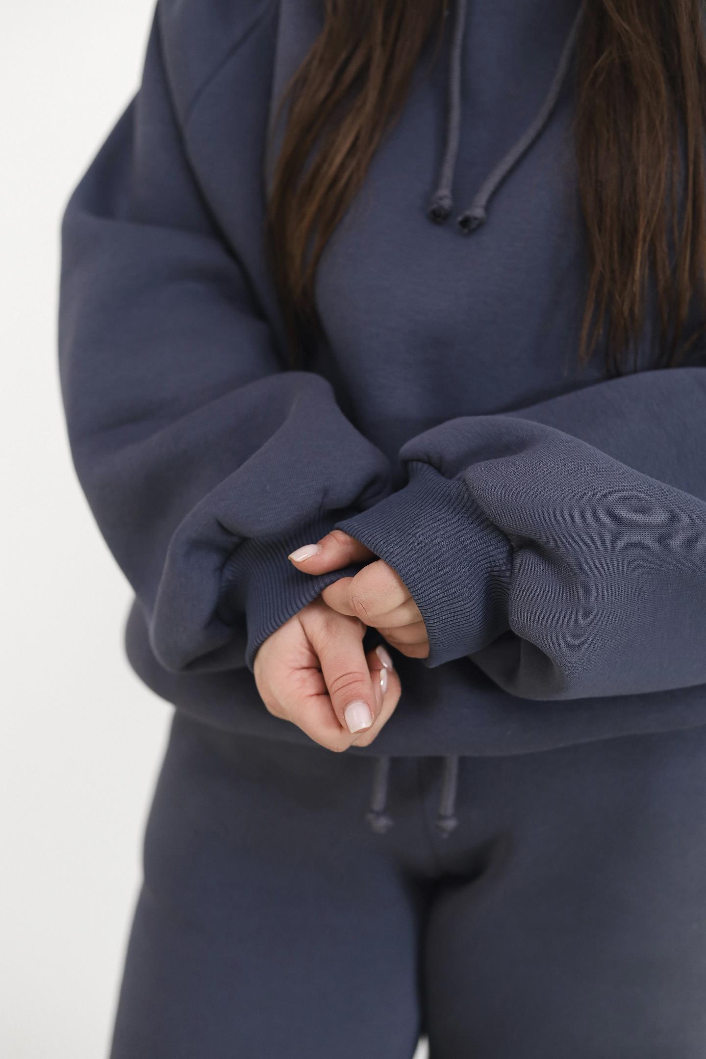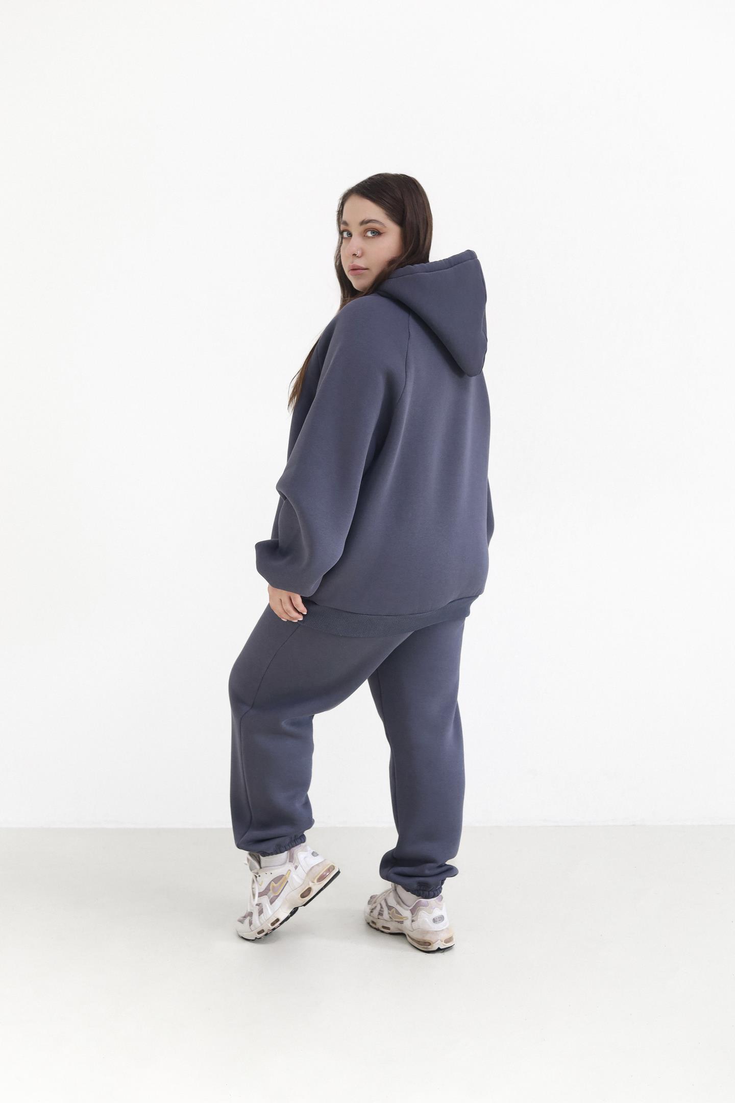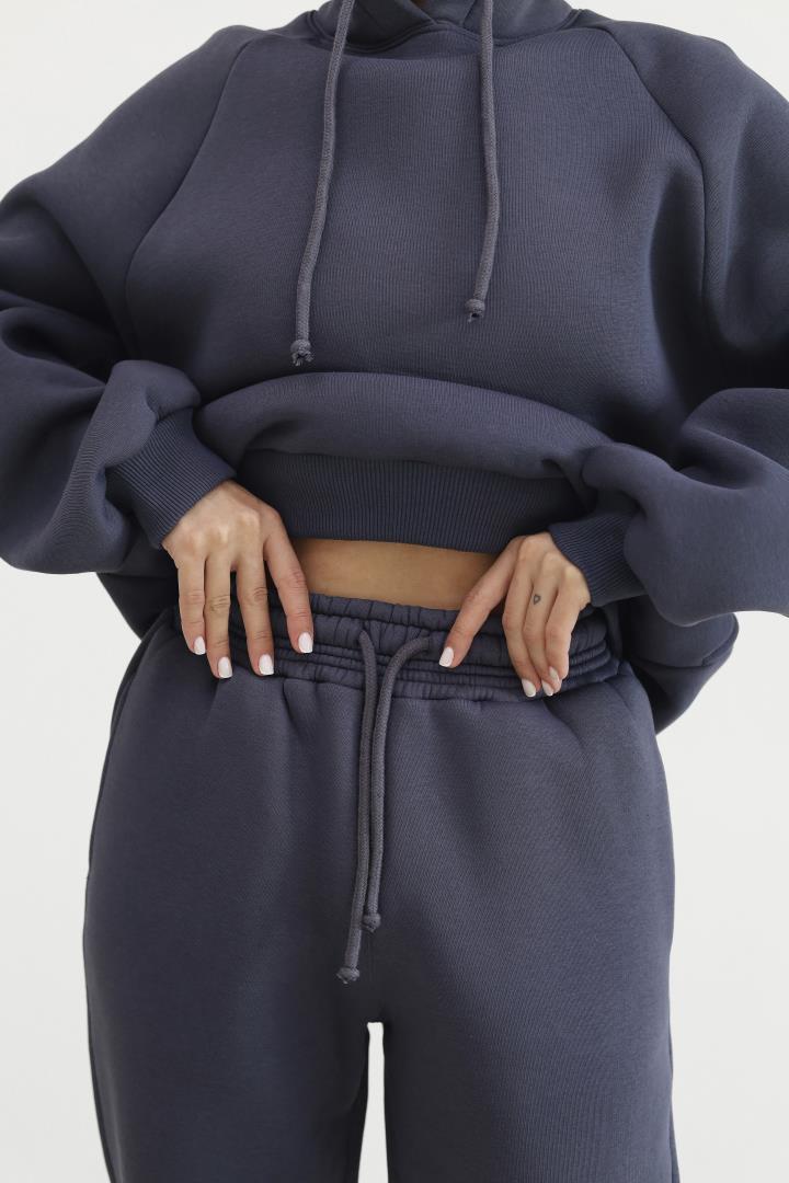Теплий жіночий костюм з худі та джогерами Антрацит