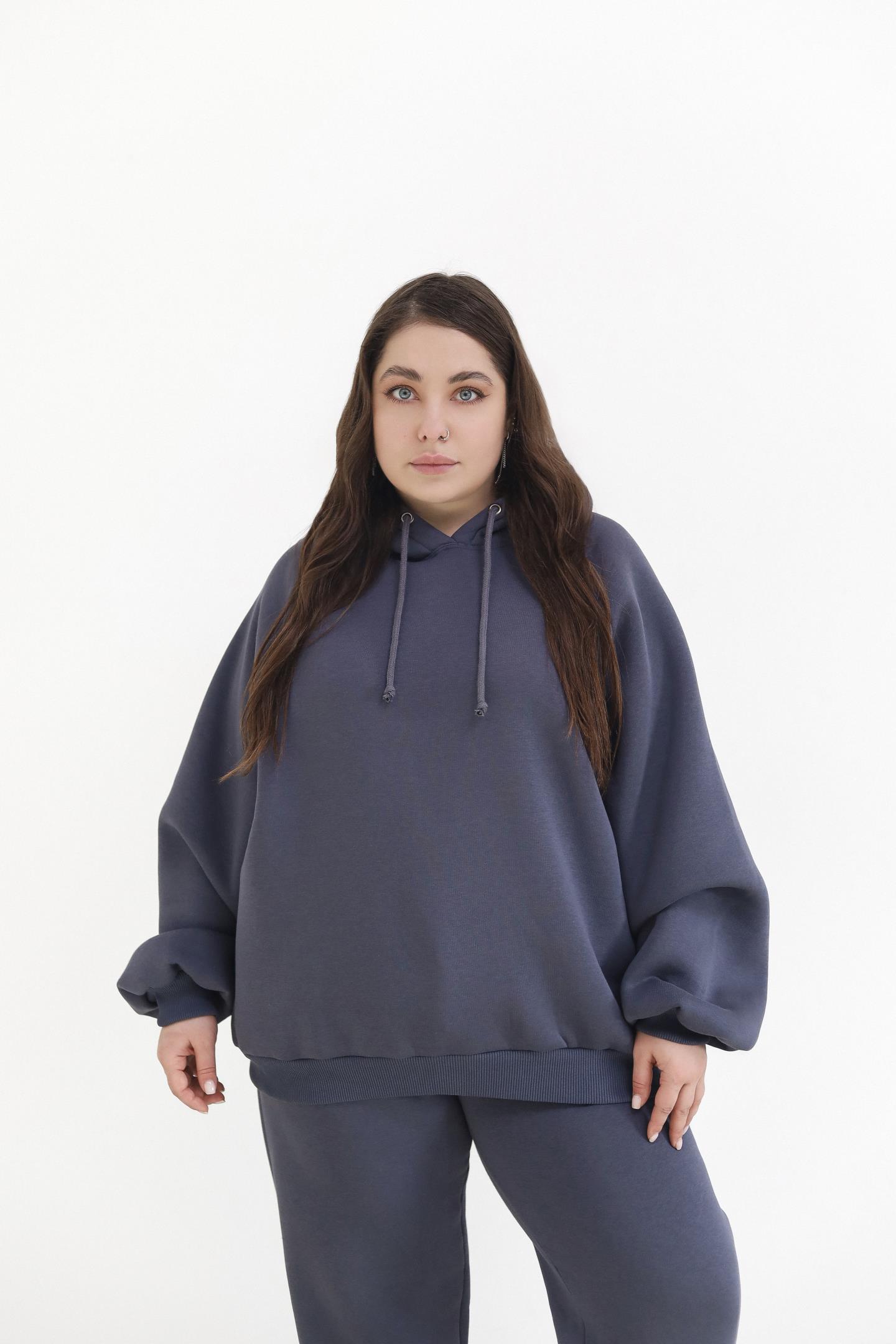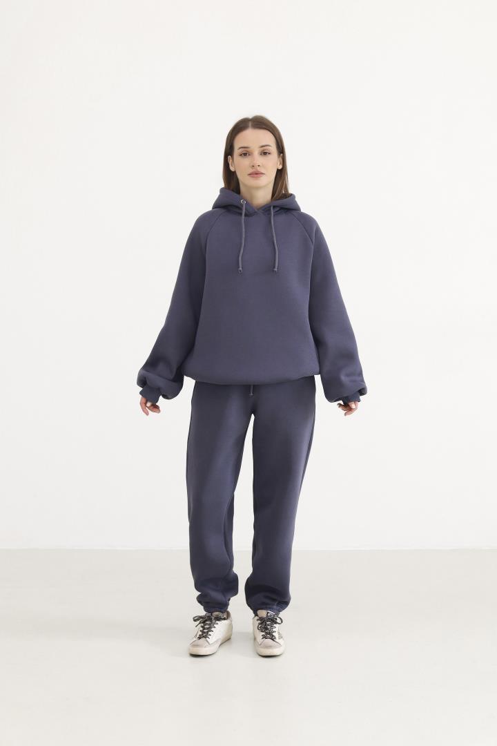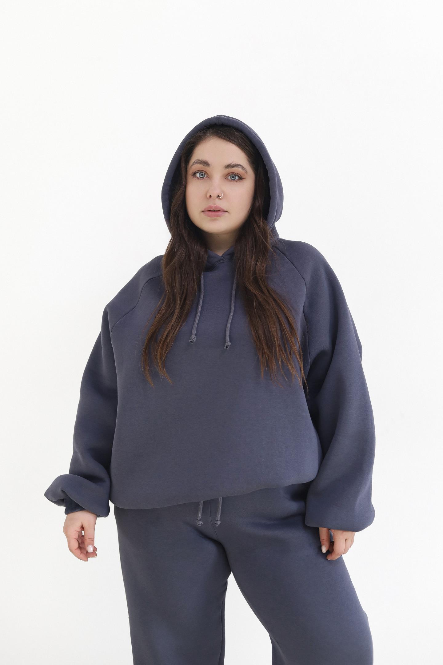 Теплий жіночий костюм з худі та джогерами Антрацит