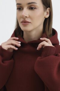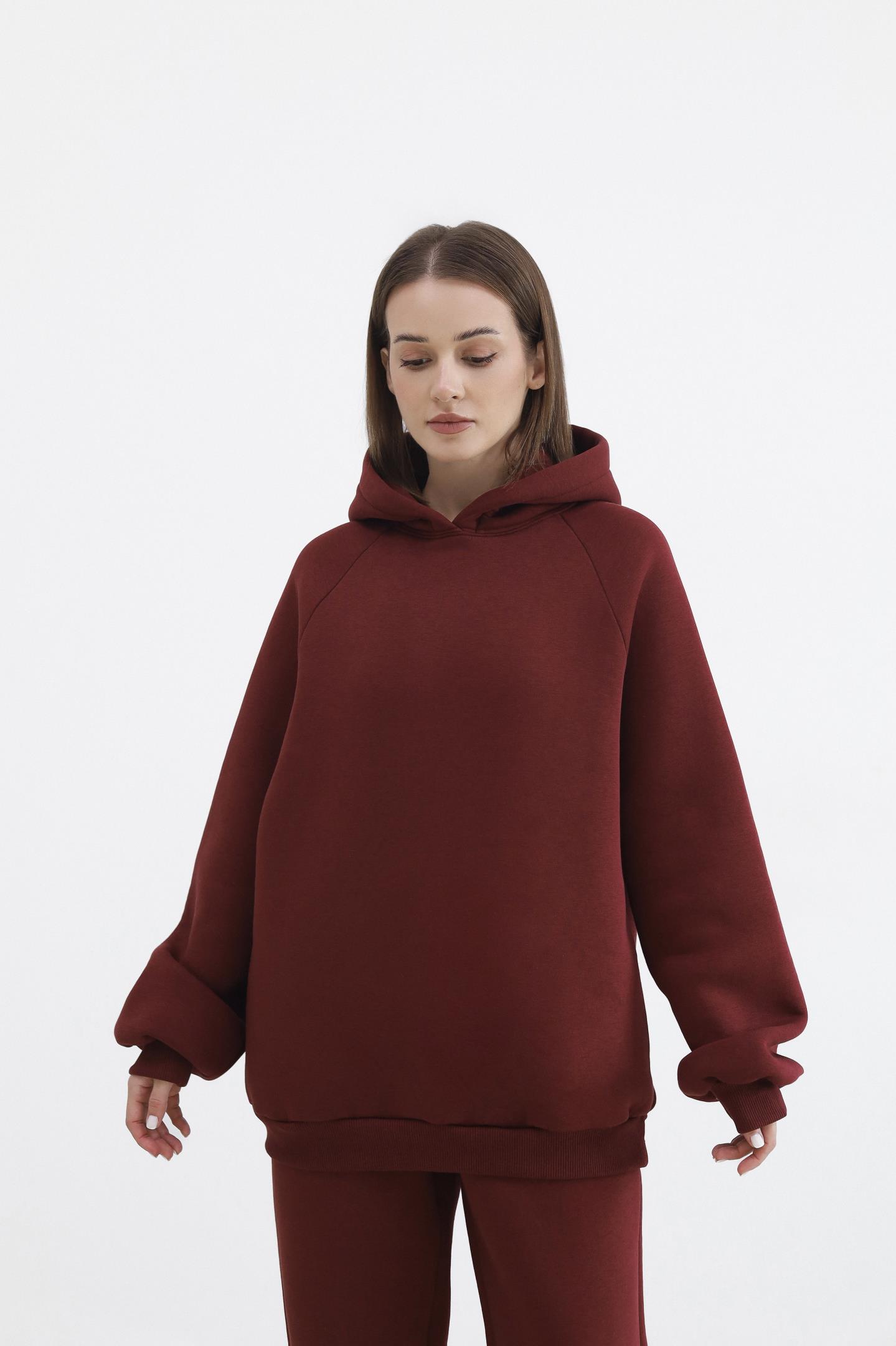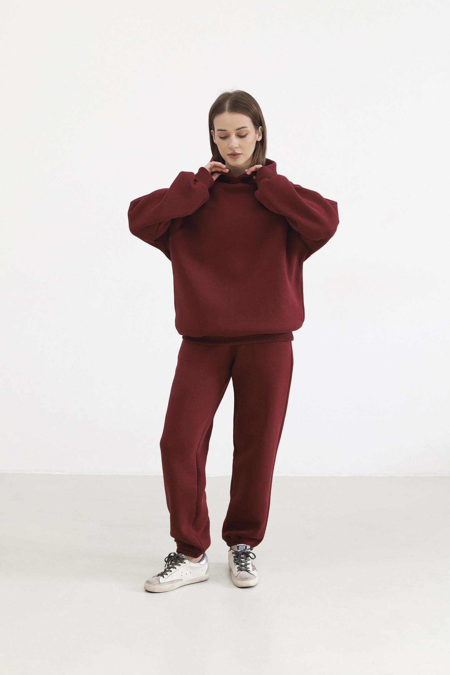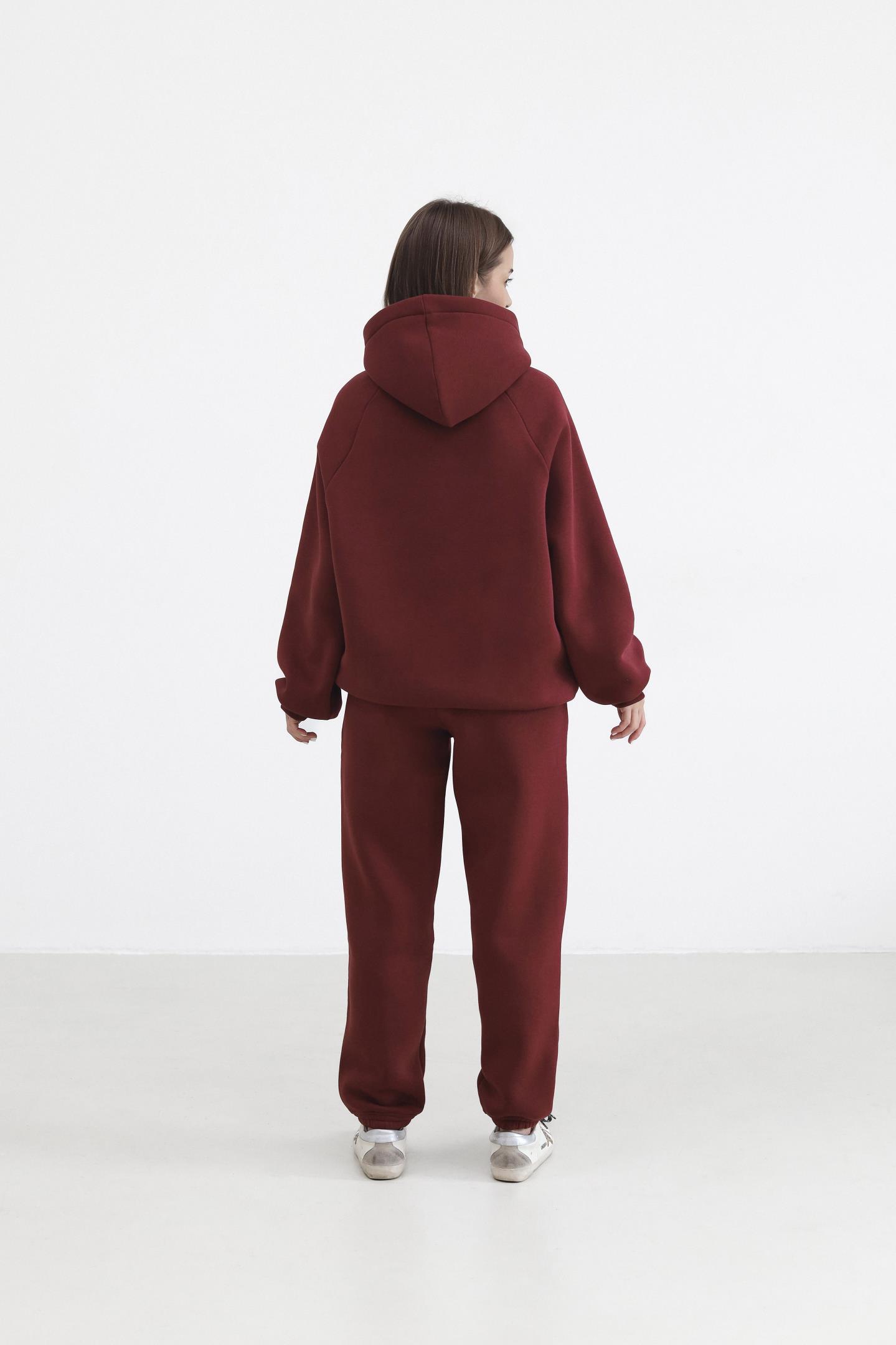 Головна Жінкам Спортивні костюми Теплий жіночий костюм з худі та джогерами Бордо